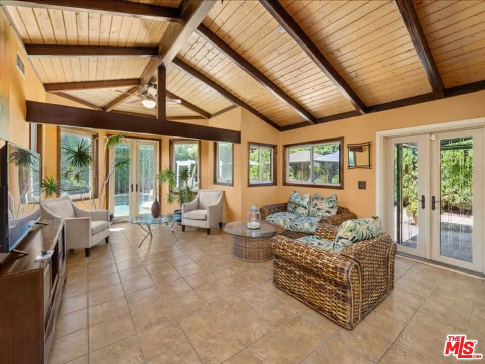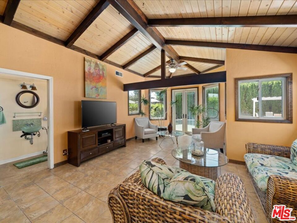 Pool home in Sherman Oaks available immediately and for short term lease. Enter through a stylish glass front door into a cozy kitchen with a charming breakfast nook. This inviting residence features two spacious bedrooms and updated bathrooms, all in a bright open floor plan with hardwood floors and sleek tile. The living area boasts a soaring cathedral ceiling with beam details and a large brick fireplace, complemented by French doors that lead to a private backyard oasis. Enjoy a heated PebbleTec pool, a covered barbecue area, and ample space for gatherings. Additional features include solar, dual-pane windows, 240V electric vehicle charger, 2-car garage and laundry in garage. Conveniently located near freeways and Ventura Boulevard, you'll have easy access to fantastic dining, shopping, and schools. MLS# 26649347