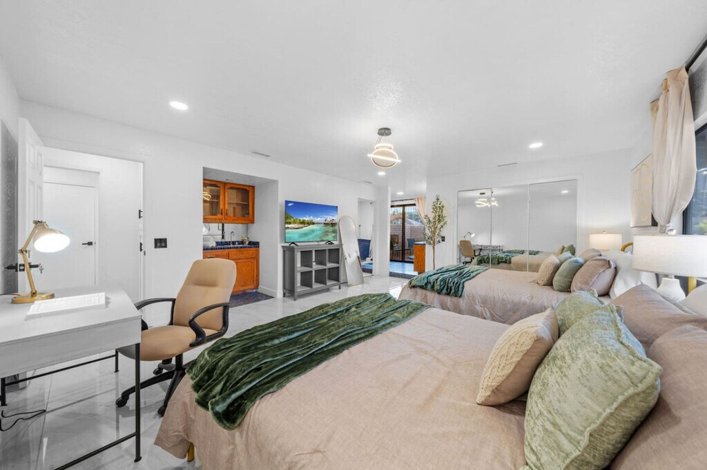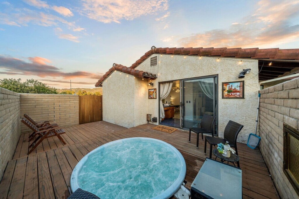 Welcome to our spacious 2,500 sqft family home in Jamul, offering stunning mountain views from every room. This ground-floor residence features a walk-in shower and provides ample parking for up to 10 vehicles in the front yard and garage. Enjoy the surrounding yard with a jetted tub and grill, and feel at home with your pets, as they are welcome here. Located just 5 minutes from casinos, vineyards, and scenic mountain trails, this home is perfect for your next getaway. The living area is air-conditioned and features an 80-inch flat-screen smart TV, complete with cable and Smart Roku for streaming services like Netflix, YouTube, and Disney+. Relax on the comfortable couches or enjoy some gaming with the available console. The modern kitchen is fully equipped with all necessary appliances, including a coffee machine, and is stocked with essentials like coffee, cooking oil, sugar, and salt. Dining tables and chairs are available both inside and outside, accommodating up to 16 people for your culinary gatherings. Pets are welcome in this home. Parking is available for up to 10 vehicles in the front yard and garage, providing convenience and security. For a small fee, early check-in at 1 PM or late check-out at 1 PM is available, as extra cleaners are needed to expedite the process. If the propane tank for the gas grill is low, guests will be reimbursed for refilling it. Additional guests beyond the platform limit can be accommodated for a small fee, with each visitor counted as half a guest. Nestled in the scenic area of Jamul, California, this peaceful retreat offers a perfect blend of seclusion and accessibility. Enjoy sweeping mountain views, fresh air, and unforgettable sunsets in this quiet countryside neighborhood. Outdoor enthusiasts will love the nearby hiking and nature spots, including McGinty Mountain Trail and Hollenbeck Canyon Wildlife Area. Jamul is also close to beautiful lakes and serene drives, showcasing Southern California’s natural beauty. You're just a short drive from a variety of dining options in Rancho San Diego and within easy reach of San Diego’s top attractions like the San Diego Zoo, Balboa Park, and La Jolla. This home is equipped with a front door security camera and an outdoor noise decibel monitor to ensure a peaceful environment. Unauthorized late check-outs may incur a fee twice the nightly rate due to cleaning and scheduling disruptions. Each unauthorized guest or pet may incur a $100 per person/pet per night fee. Smoking is strictly prohibited inside and outside the home to maintain fresh air for all guests and neighbors. Excessive noise may lead to a $1,000 violation fee, as it could risk the suspension of the listing. Check-out is by 11:00 AM unless a late check-out fee has been paid. For those working remotely, the home offers a choice of desks and chairs both inside and outside, along with ATT 5G fast Wi-Fi, making it easy to host online meetings or share large files. A laptop computer is not included. [SI]