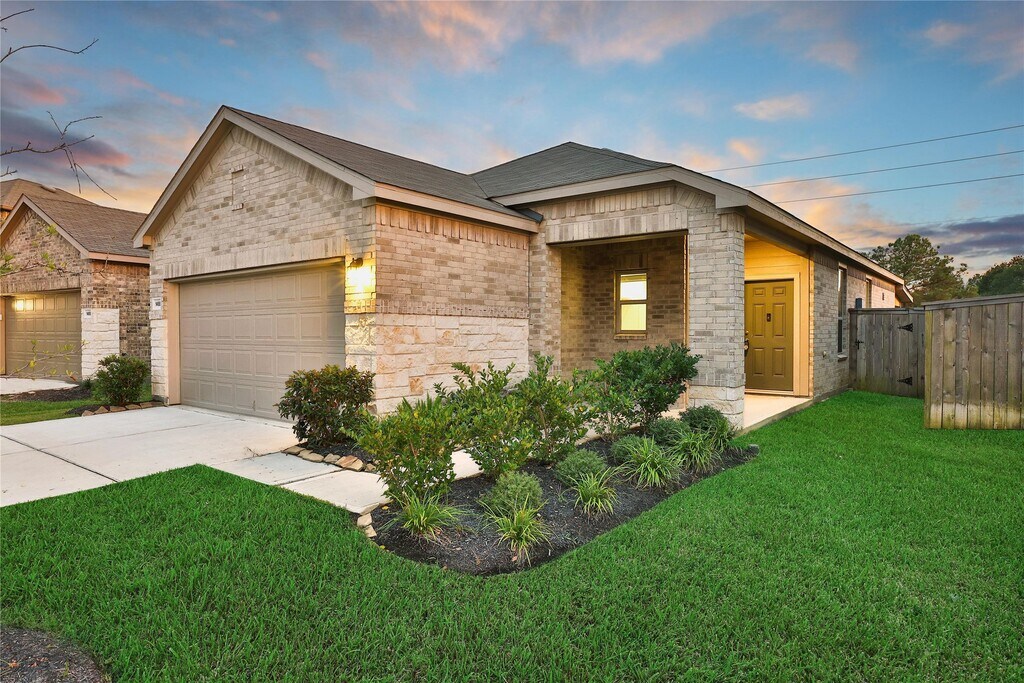 Discover easy living in the growing community of Mavera. This 3-bedroom,2-bath home combines modern comfort with a relaxed,low-maintenance lifestyle. Step inside to an open-concept layout with warm wood-style floors,white cabinetry,and stainless steel appliances that make everyday living effortless. The spacious primary suite offers a walk-in closet and views of the private backyard with no rear neighbors. Enjoy quiet mornings on the covered patio or unwind while watching the sunset over the treeline. Mavera offers family-friendly amenities with more on the way—including a new pickleball court,wiffle ball park,and biergarten—perfect for connecting with neighbors and soaking in the Texas outdoors. Ideally located near I-45 and TX-242,this home brings convenience,comfort,and community together. MLS# 37373486
