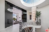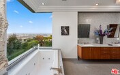 LEASE TERM TO BE FOR NO LESS THAN ONE YEAR + ONE DAY. AVAILABLE FURNISHED OR UNFURNISHED. Inspired by some of the greatest Art Deco landmarks of our city, this rarified contemporary residence sits commandingly at the end of a gated private driveway flanked by an avenue of palm trees. The two-story entrance hall with its curving staircase leads to a sunken great room with disappearing walls of glass, a sanctuary for your senses, where an infinity edged pool spills into astonishing views from the San Gabriel Mountains to the Pacific Ocean. The full downtown skyline is the dramatic focal point, other times it's the jaw-dropping colors of the sky, shape-shifting clouds, or exceptional soaring hawks that grace the sky as you lounge on the pool deck.With a total of three bedroom suites, each with its own bath and unique stone floors, the primary bedroom stands out due to its romantic fireplace, boutique-worthy closet and dreamy panoramic views from your pillow. Just a few steps away, open the Fleetwood pocket doors to the pool terrace and indulge in the bubbling spa and outdoor shower. The saltwater pool and spa allow you to create the perfect mood with LED lighting in a variety of colors, as well as starry sky fiber optic lights embedded in the pool's surface, all controlled remotely. A rooftop gobo light connected to an indoor switch displays your logo or message in the pool, or on the deck, when entertaining special guests. Your gourmet kitchen boasts top-of-the-line Miele appliances including a built-in espresso machine, dual sinks, and a center island with marble counters. All graciously flow to the circular breakfast nook and dining room featuring floor to ceiling windows that flood the space with sunlight and stellar views. On the lower floor, enjoy a professionally-sized screening room that's tucked away next to a river rock outdoor atrium where palm trees, a symbol of Hollywood dreams, reach to the sky.A variety of beautiful materials, including hardwood floors in the bedroom suites and walk-in closets, are used throughout. Art Deco flourishes are seen in the custom iron work and classic mosaic bath tiling, as well as in the architectural detailing inside and out. The terrazzo floors are custom built to last using old world Italian craftsmanship. Like the beautiful and stylish architectural treasures that inspired its creation and design, this estate is unique, significant and evolutional. MLS# 25579157