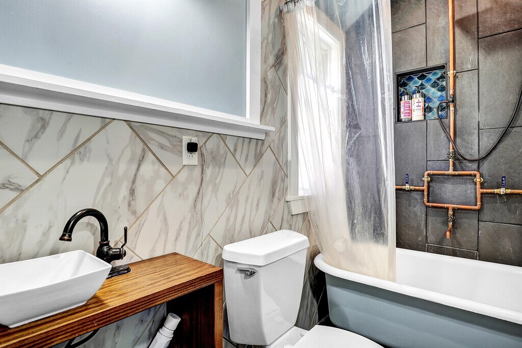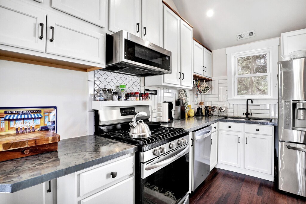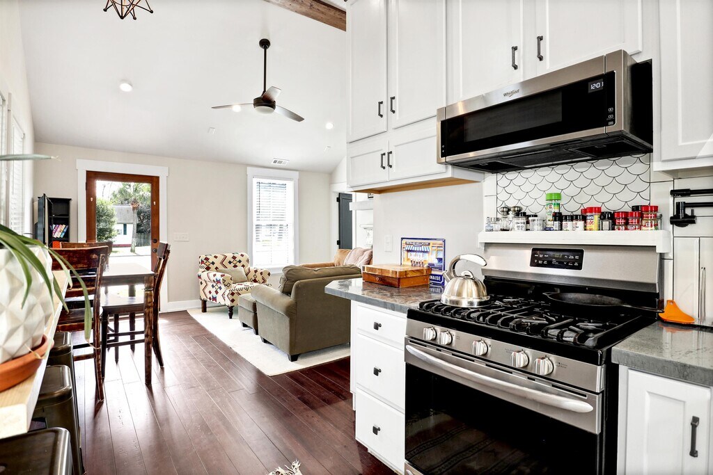 AVAILABLE MAY 1ST, 2026. Welcome home to 1456 E Montague Avenue, an adorable 1940s Park Circle bungalow that has been meticulously maintained, with a plethora of updates and custom finishes. From the moment you pull up to this charmer, you can tell this home has been loved and well-cared for. With a gravel horseshoe driveway out front and separate parking pad on the right, you have plenty of space to maneuver and park multiple vehicles. Once inside, you are greeted by a well lit living space with 12' ceilings and rustic exposed wood beams. The main living area is highlighted by gleaming hardwood floors, that stretch out throughout the home, into both the kitchen and bedrooms. With its sophisticated details, and bright, open interior, this 3 bed / 2 bath is both inviting and functional! At the back of the home is the modern kitchen with custom 42" cabinets and stainless steel appliances to include gas cooktop & oven, built in microwave, dishwasher and refrigerator. The space is completed with a built in high top breakfast bar, perfect for entertaining. The homes three bedrooms feature 10' ceilings. The two guest bedrooms both share a modern 'wet bath' that has been fitted with copper bath fixtures, rainfall shower and handheld shower heads. One of the two bedrooms also features a built in bunk bed with a desk area beneath. The master bedroom is extremely private, with it's own en suite bath and large closet. The master bath features dual vanities and a vintage clawfoot tub, along with copper bath fixtures and rainfall shower. Out back, enjoy soaking in the sun or grilling out on the massive patio while the pets or kids play in the expansive yard. The (newly fenced) spacious backyard is a blank slate for all of your entertaining and gardening needs and the detached shed provides the perfect amount of storage space for your yard equipment. Washer and Dryer located in exterior shed as well! In addition to being a vibrant, growing area, Park Circle was was voted ''Best Neighborhood'' by Charleston City Paper in 2021! The neighborhood is a Vibrant Community of artists, events, restaurants, and breweries. There is never a shortage of things to do within the area. Aside from downtown, it is one of the few areas in Charleston where every place you want to go is just a quick walk or bike ride away. 1456 E Montague is a short distance from all the restaurants and bars that Park Circle has to offer. Minutes away from the New Park Circle Playground and Quartermann Park. NO PETS PREFERRED. Pets Allowed with $250 One Time Non-Refundable Pet Deposit + $50 Per Month (Per Pet) ALL UTILITIES ARE TENANT RESPONSIBILITY. LANDSCAPING HANDLED BY MANAGEMENT.