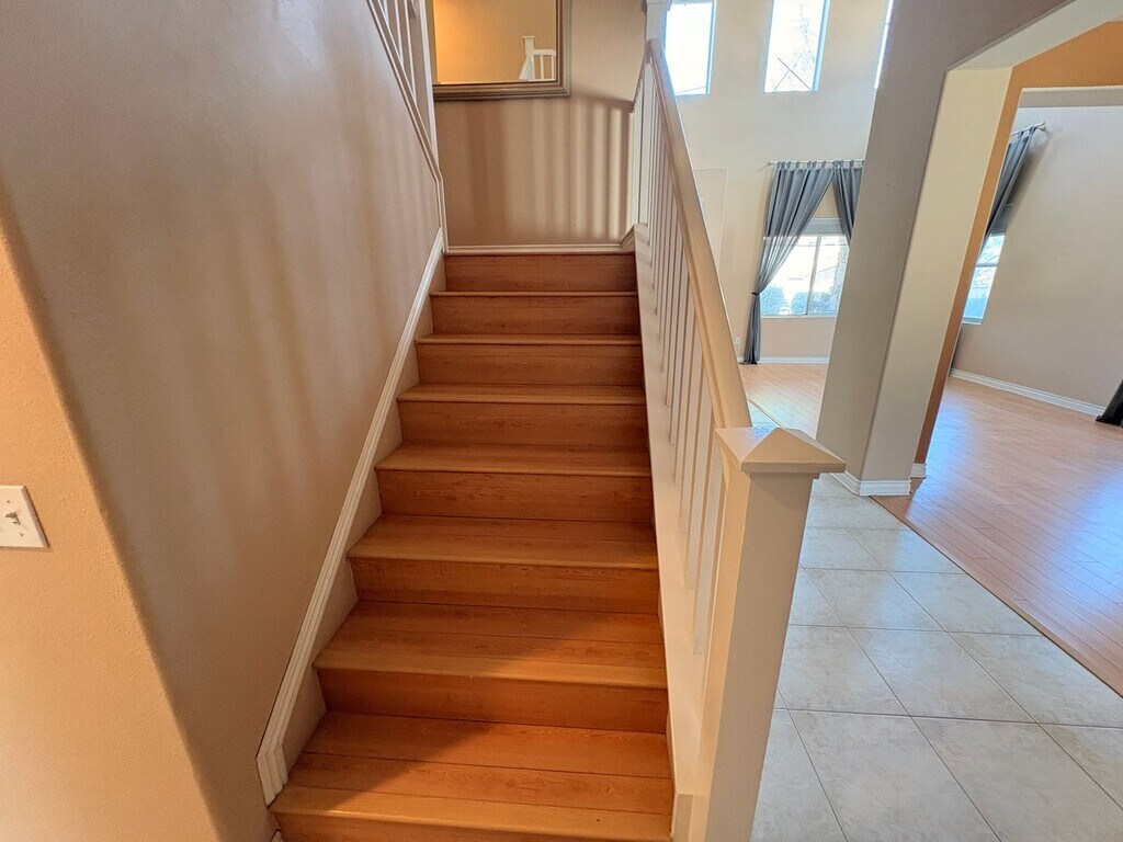 Welcome to this stunning 4-bedroom, 3-bathroom home located in the vibrant city of Corona, CA. This property boasts a spacious living room, perfect for entertaining or relaxing after a long day. The kitchen is equipped with a gas stove and microwave, making meal preparation a breeze. The primary bedroom features a walk-in closet, providing ample storage for your wardrobe. Additional storage is available in the convenient storage closet downstairs below the stairs. The home also includes a dedicated laundry room, adding to its practicality. A large backyard offers plenty of space for outdoor activities or gardening. The property also features a 3-car garage, providing ample parking or additional storage space. The cozy fireplace adds a touch of warmth and charm to this beautiful home. Experience the perfect blend of comfort and convenience in this 4 Bed, 3 Bath in Corona!