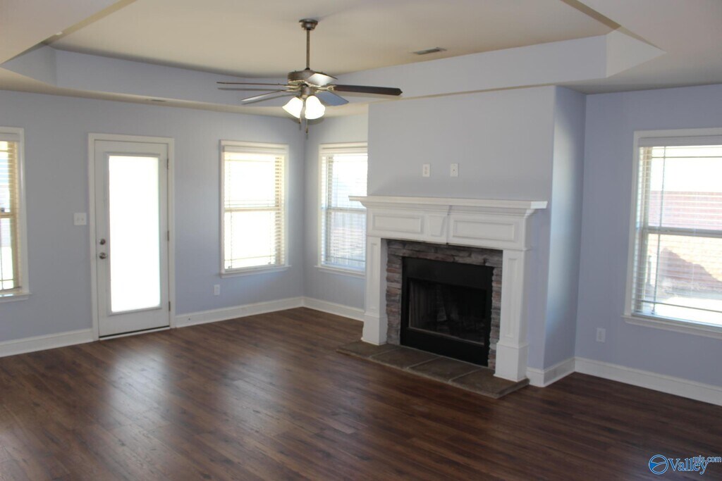 Grab this one quick..Popular 4 Bedroom with Open Living Room/Kitchen. The Living Room has a Gas Log Fireplace,Kitchen with Stainless Appliances,Granite counters and Island! NO CARPET in this Home! Fresh Neutral Paint throughout. Isolated Master Bedroom with Spa Bath. Extra Office or Dining Space off Living Area! You will enjoy the Covered Back Porch and EXTENDED Patio overlooking the Privacy Fenced Backyard! Hurry... this one won't last!