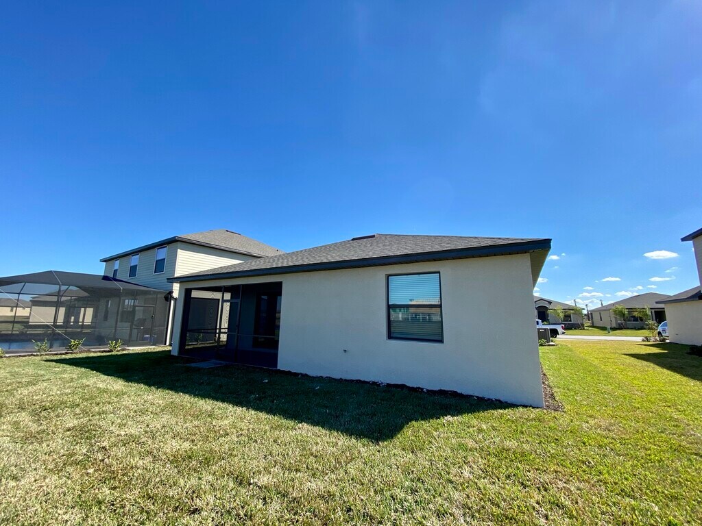 This new 2020-built Trevi model home offers 2,032 square feet of versatile living space featuring 4 bedrooms in a desirable split plan with 3 full baths. The Owner's suite offers a private retreat with two walk-in closets and bathroom with dual sinks and large spa shower. The spacious kitchen is open to both family and dining rooms, delivering the ideal for layout for socializing and entertaining. Enjoy the laid back Florida lifestyle and lake view from the covered lanai. Granite counters in the kitchen area and GE stainless steel appliances. Portico is a gated, master-planned residential community located in East Fort Myers. Developed by Lennar Homes, the neighborhood features a variety of home styles, a town center with resort-style amenities, and extensive lake and preserve views. Living at Portico is truly like being on vacation. there's state-of-the-art fitness center to keep your body fit and energized, the lakes to gaze upon to soothe the soul, the heated pool to frolic in or swim laps no matter the outside temperature, and the clubhouse to congregate for every kind of socializing with friends and neighbors. There's so much to do and enjoy in your beautiful home at the warm, inviting community of Portico!