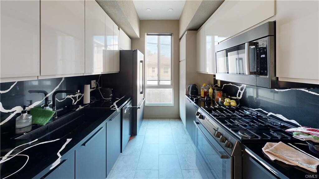 - Step into this beautifully designed home featuring a rare and desirable layout with all three bedrooms located on the same level—the second floor of a well-maintained condo building. This spacious unit offers two convenient entrances: one through the main interior hallway and another via the private outdoor patio/balcony, creating a seamless indoor-outdoor flow. Inside, you'll find arched doorways, crown molding, and hardwood flooring, all contributing to the home’s classic charm. Large windows throughout bathe the living spaces in natural light. The double-door entry opens to a bright and functional galley kitchen equipped with a 5-burner cooktop, oven, microwave, and refrigerator—perfectly illuminated by sunlight from the kitchen window. The home features hardwood flooring throughout, with tile in the kitchen and slate and marble finishes in the bathrooms. The custom-designed bathrooms, styled in warm, elegant tones, offer a luxurious feel. Residents enjoy access to a host of amenities, including a pool, jacuzzi, and sauna, and the unit includes two assigned side-by-side parking spaces in a secured area. A perfect blend of comfort, design, and convenience—this is a must-see home! Listing provided by: Edward Frish of Century 21 Hollywood LA State License 1252271 Listing posted by Fernando Valen [SYNDID 4140063 10202025]