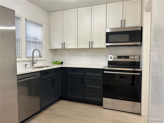 Single family House with private yard! Fully remodeled ranch home with 3 beds and 2 baths. Amazing fenced in backyard with new sod that anyone will love in spring/summer. Great location with easy access to I25 and to RTD LightRail, just 15 min from many Denver attractions. New concrete driveway, new kitchen cabinets, new appliances and new washer and dryer. The original garage was converted into a master bedroom with an ensuite bathroom. The living room/dining room has access to the large backyard through sliding doors, with newly poured concrete patio to enjoy the spring and summer outdoors. Available today. Single Family Residence MLS# 7774885