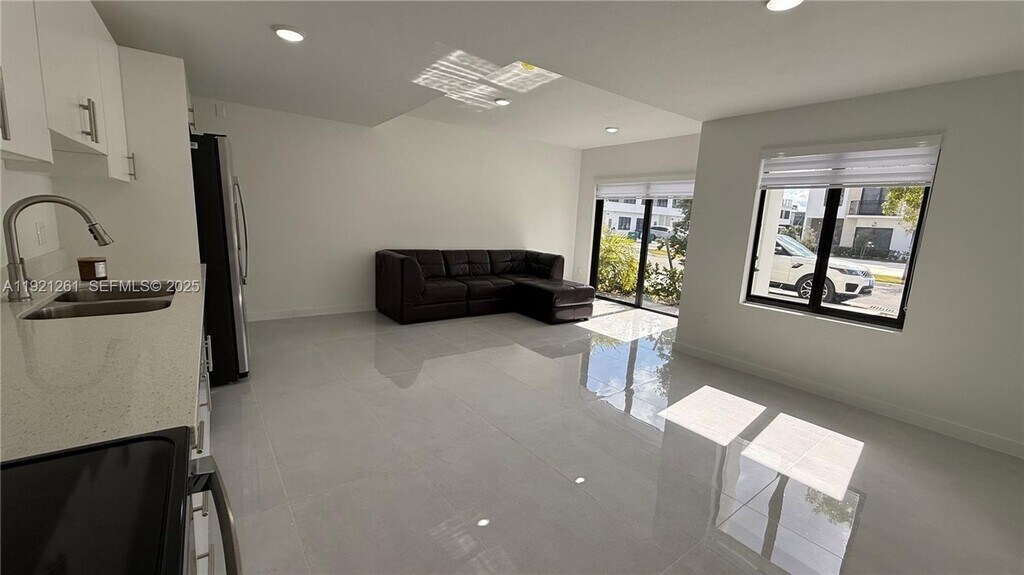 Courtesy of Luxe Properties Posted by Andrew Coleman with EXP Realty . Be the first to occupy this stunning 4-bedroom, 3-bath townhome. This concrete-built home features impact windows, a private rooftop terrace, and two dedicated parking spaces. Inside, enjoy modern finishes including quartz countertops and an open-concept kitchen equipped with stainless steel appliances. The primary suite offers a full bathroom, walk-in closet.