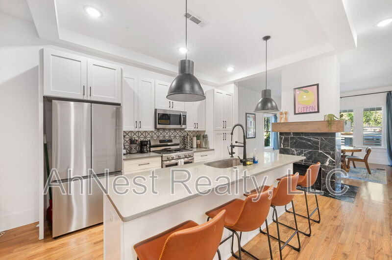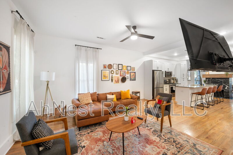 Fully Furnished, with All Utilities included. You will love this beautiful, cozy and stylish upgraded 3-Bedroom, 3-Bathroom home offering over 2,500 sq.ft. of generous space. Part of a duplex with the bottom basement unit occupied. This beautifully renovated home features an open-concept layout with 9ft kitchen island with quartz countertops, stainless steel appliances, hardwood flooring on the main level, spacious master suite with double vanities and a walk-in closet. You will also find a marble surrounded decorative fireplace, loft/office flex space, and entertain off your main floor deck in your oversized fully fenced backyard. Conveniently located near I-20 and 75/85, Hartsfield-Jackson Airport, Mercedes Benz Stadium, Westview shopping, and dining. Move-in ready—just bring your suitcase!