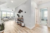Welcome home to this beautifully maintained 4-bedroom,3-bathroom plus loft home in the desirable Bartram Creek community offers exceptional convenience and value. Simply arrive with your personal belongings and begin enjoying the perfect balance of everyday functionality and timeless charm! This 2019 home features a thoughtful floorplan with luxury vinyl plank flooring throughout and a gourmet kitchen boasting granite countertops,stainless steel appliances (new dishwasher),large island and 42'' cabinetry. Also downstairs,you will find a bedroom and full bathroom,perfect for guests! The primary suite is a peaceful retreat with a spa-like bath,complete with soaking tub,walk-in shower and generous sized walk-in closet. The upstairs features the additional bedrooms and bathrooms and oversized loft,perfect for a media room or playroom! Thoughtfully upgraded throughout,this home includes a new fence,water softener,and a central vacuum system enhancing both convenience and comfort. Step outside to your lanai overlooking a fully fenced backyard,perfect for relaxing,grilling,or letting children and pets play freely. Residents of Bartram Creek enjoy no CDD fees,a low HOA,and access to exceptional family-friendly amenities including a community pool with state-of-the-art splash pad for toddlers,playground,and walking paths. The welcoming neighborhood hosts delightful holiday events for children,fostering a true sense of community. All located just minutes from Durbin Pavilion,dining,and top-rated schools. Also listed for sale - MLS#2092860