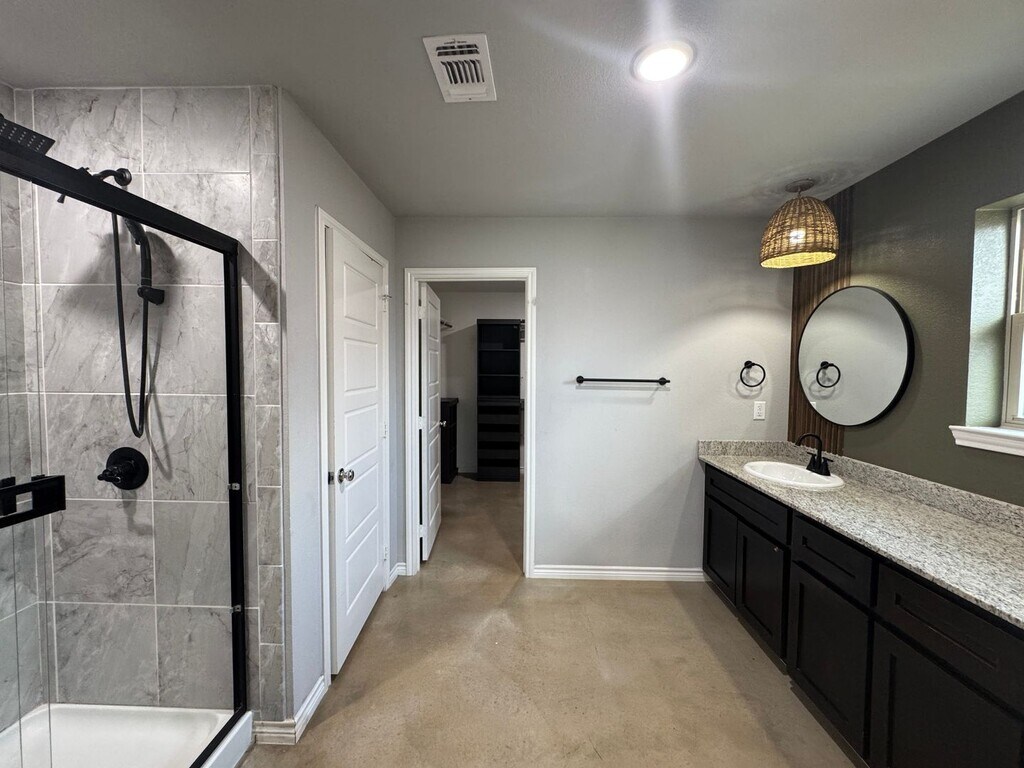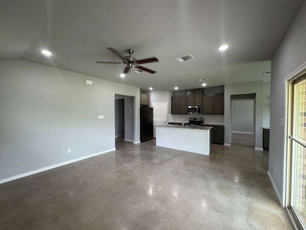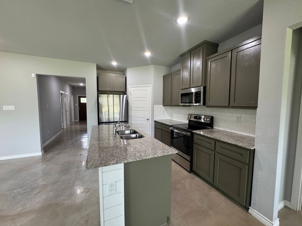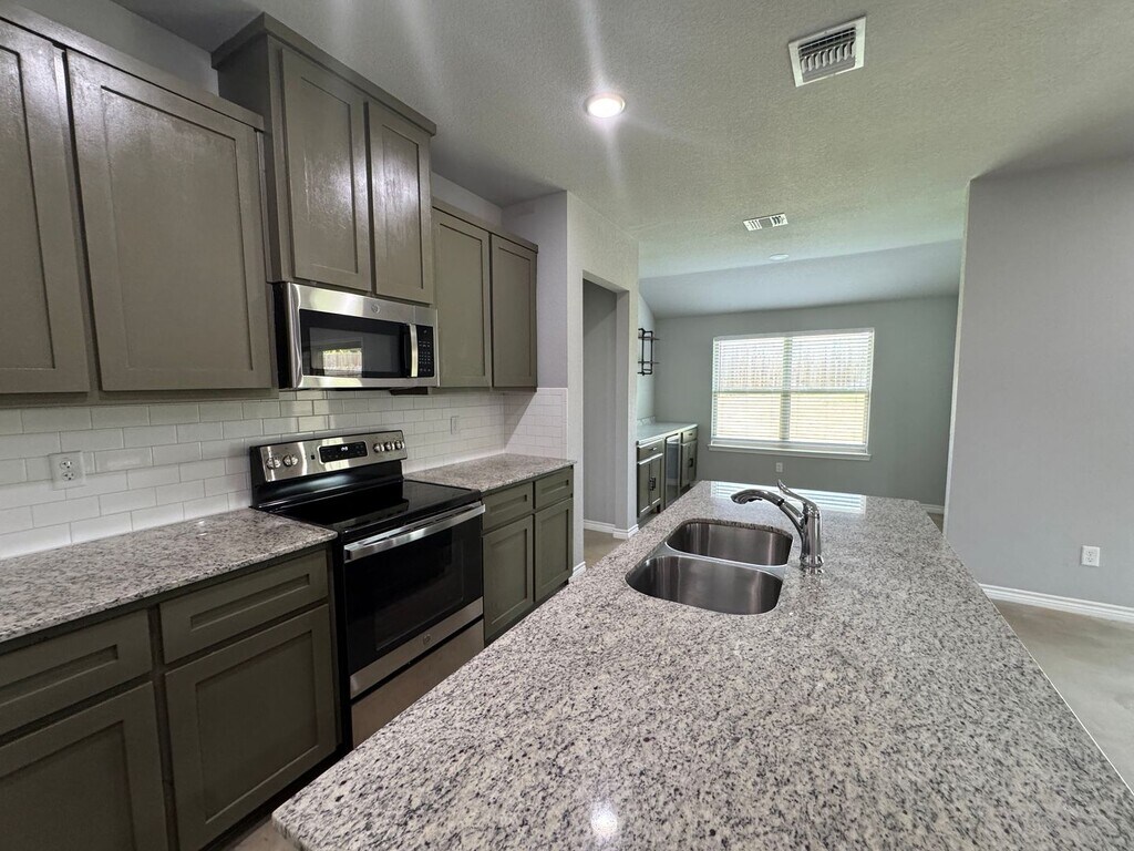 View 360° virtual tour: This 3-bedroom, 2-bath home offers a stylish and functional layout designed for everyday living. The kitchen features granite countertops, stainless steel appliances, and recessed lighting, creating a modern and inviting space. The living area includes a built-in TV stand for added convenience. The primary suite includes an ensuite bathroom with a large stand-up shower, double vanity, and a spacious closet. Additional highlights include washer and dryer connections, an attached garage, a back porch, and a nicely sized yard—perfect for relaxing or entertaining. Appointments aren't required to tour. Contact us or stop by our Killeen office to learn more and see this home in person once it becomes available! We are located at 1020 W Jasper Drive, Killeen, TX 76542. Disclaimer: The furnishings or enhancements shown are AI-generated and intended for inspiration only. They may not reflect the actual scale, condition, or current features of the property.
