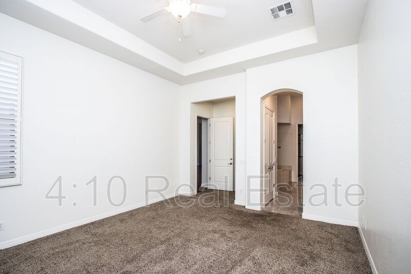 Come see this gorgeous, newly painted interior 3 bedroom 2.5 bath home that comes with upgraded flooring, countertops and appliances. Washer/dryer also included. Located in a gated community, this open floor plan is perfect for entertaining with updated window coverings and ceiling fans throughout. The spacious master bedroom has a huge walk in closet and the adjoining bath features duel sinks, separate shower and tub. Desert landscaped backyard with putting green and unobstructed view of the lake. Neighborhood has green belts and walking paths. Close to the 303 and I10 freeways, parks, shopping and dining. Welcome home! Pets welcome! 30lbs dogs on non restricted breeds list only. Move in charges: $2595 - Security refundable $250 - Cleaning refundable $150 - Leasing fee $300 - Pet fee non refundable Monthly charges: $2595 - Rent $8 - Admin fee $12 - Insurance