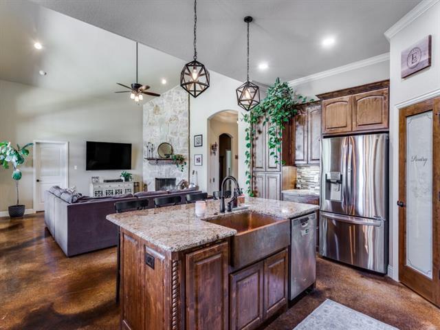 Lovely custom-built home situated on 2 serene acres, offering the perfect blend of comfort and style. Enjoy outdoor living at its finest with an outstanding oversized covered patio—ideal for entertaining or relaxing while taking in the peaceful surroundings. Inside, the spacious living area features stunning floor-to-ceiling windows that flood the space with natural light, beautifully complemented by a striking stone wood-burning fireplace. The heart of the home is the gorgeous island kitchen, complete with a farmhouse-style sink, double ovens, and abundant cabinet and counter space—perfect for both everyday living and hosting. The oversized primary bedroom provides a private retreat, paired with an exquisite en-suite bath designed for comfort and elegance. Additional highlights include a generously sized, separate laundry room for added convenience. This property offers the space, charm, and thoughtful design you’ve been looking for—don’t miss the opportunity to make it yours! Good credit required.