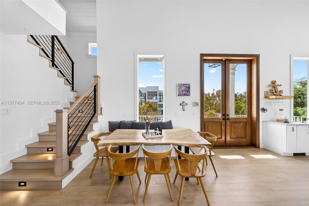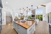 Spectacular waterfront residence built in 2021 showcasing exceptional craftsmanship and high-quality materials throughout. This three-story coastal retreat offers 6 bedrooms and 6.5 bathrooms and is perfectly positioned facing west, capturing breathtaking sunset Gulf views while offering enhanced privacy with no rear neighbors. The first floor features a private guest suite, living area with projector movie theater, garage, air-conditioned storage, and laundry room. This level opens to a beautiful outdoor setting with heated pool, terrace with seating areas, summer kitchen, outdoor dining space, and gas fire pit overlooking the canal. The second floor showcases vaulted ceilings with exposed wood beams, electric fireplace, and expansive windows that bring in abundant natural light. The open living and dining areas flow into a chef’s kitchen with custom cabinetry, wood countertops, premium appliances, and large island, opening to a spacious waterfront porch with outdoor living and dining. This level also offers 3 bedrooms and 3.5 bathrooms, including a second primary suite. The third floor features the primary suite with private balcony, sitting area, additional room, loft space, and full bath. Additional features include elevator, two laundry rooms, two-car garage, ample parking, and two sleeper sofas. With 70 ft of waterfront, dock for up to a 40-ft boat and optional 25K-lb boat lift. Seasonal rental, minimum 28 days. Accommodates 14-18 guests. MLS # A11977484