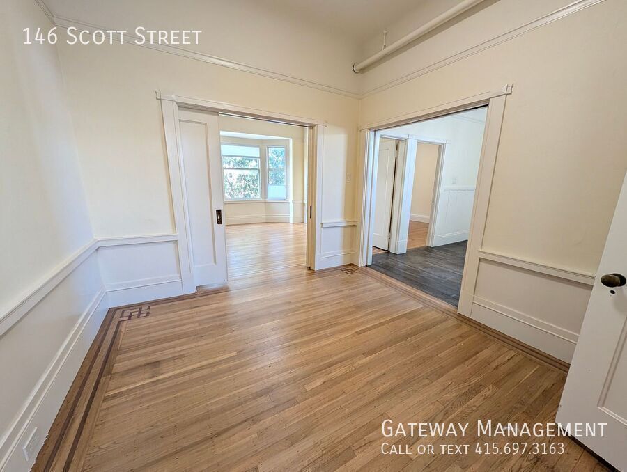Located in one on SF's popular Lower Haight neighborhoods, close to shops, transportation and recreation. This beautiful top floor flat has a corner like location overlooking one story corner building, Entire top floor of corner building. Excellent light hardwood, plnak vinyl and tile throughout Lots of Edwardian wood trim detail throughout. This two fireplaces are decorative or non-working Large bedrooms with good walk-in closets. Newer kitchen with grey quartz counters, Stainless steel appliances including dishwasher, gas stove, icemaker french door refrigerator, garbage disposal, counter lighting, overhead fan, room for a table Back porch is good size with a view One large full bathrooms with 2nd half bath discounted shared washer dyer in garage with 4 other occupants in the building NEIGHBORHOOD: Just off the famous wiggle bicycle path one block to Duboce Park, the Harvey Milk Center for the Recreational Arts at 50 Scott St. Walk 4 blocks to Alamo Square Square featuring the famous view of the painted ladies and SF in the background. Upper Market/Casto; NOPA's Divisadero, and the Haight Ashbury are nearby while the Lower Haight begins on this building's block TRANIST . Central city location for good access to all parts of the City and SF Bay Area. TRANSIT: Muni Metro runs often under Market St to get downtown. Catch the 7 or 8 at Haight and Pierce Sts See more photos and SCHEDULE A SHOWING at: No, it's not a hyperlink. :-( You still have to copy-and-paste this link into the address bar on your web browser. Top Floor Renovated Edwardian renovated 4 bdrm 1.5 bath Lrg Rooms @ Scott & Haight Sts 146 Scott Street, San Francisco, CA, 94117 $6300 per month Available now 4 beds, 1 full and 1 half bath 1800 sq. ft. Deposit $6300.0 Located in one on SF's popular Lower Haight neighborhoods, close to shops, transportation and recreation. This beautiful top floor flat has a corner like location overlooking one story corner building, Entire top floor of corner building. Excellent light with fresh hardwood, plank vinyl and tile flooring Lots of Edwardian wood trim detail throughout. This two fireplaces are decorative or non-working Large bedrooms with good walk-in closets. Newer kitchen with grey quartz counters, Stainless steel appliances including dishwasher, gas stove, icemaker french door refrigerator, garbage disposal, counter lighting, overhead fan, room for a table Back porch is good size with a view One large full bathrooms with 2nd half bath discounted shared washer dyer in garage with 4 other occupants in the building NEIGHBORHOOD: Just off the famous wiggle bicycle path one block to Duboce Park, the Harvey Milk Center for the Recreational Arts at 50 Scott St. Walk 4 blocks to Alamo Square Square featuring the famous view of the painted ladies and SF in the background. Other nearby parks include Buena Vista & the Panhandle. The City center location is convenient to the commercial corridors of Upper Market/Casto; NOPA's Divisadero, and the Haight Ashbury while the Lower Haight begins on this building's block TRANIST . Central city location for good access to all parts of the City and SF Bay Area. TRANSIT: Muni Metro runs often under Market St to get downtown. Catch the 7 or 8 at Haight and Pierce Sts Contact Us: Gateway Management Chris Collins See more photos and SCHEDULE A SHOWING at: Garbage Water