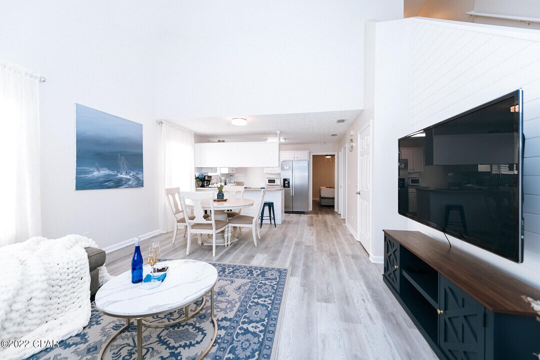Available on 3/01/2026 for 12 months lease. Wonderfully maintained freshly painted and fully furnished 3 bedroom 2 bath 1,432 SqFt townhouse in the ever-popular and gated Palm Cove community. The kitchen has oven/stove, dishwasher and microwave and is open to the dining area and great room. Laundry room is equipped with full size washer and dryer. The complex boasts a pool and after dark security guard. Sorry, no pets. Power, water/sewer, trash pick-up, internet and grass cut are included in rent. This property is minutes to the beach, college, Pier Park, Navy base, Publix Sports Park, restaurants, & more!