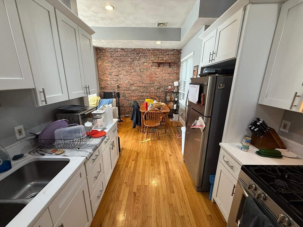 Spacious duplex apartment featuring hardwood floors throughout and a modern kitchen with stainless steel appliances,gas stove,dishwasher,and disposal. In-unit laundry included. A charming spiral staircase leads to the lower level,offering additional storage space,two extra bedrooms,and a full bathroom. The unit will be freshly painted prior to move-in. Parking is available for rent in the adjacent lot for $200/month. MLS# 73504902