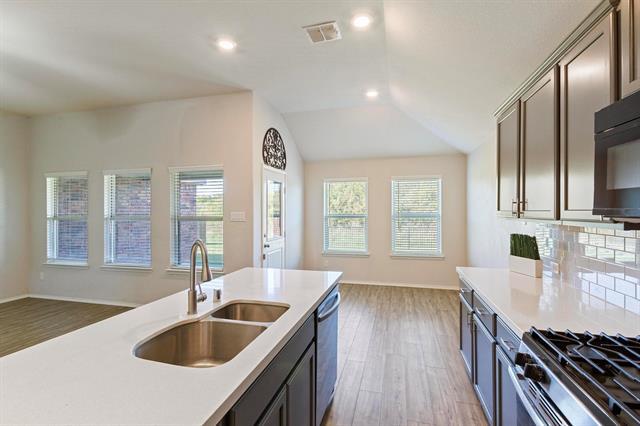 Discover comfort and privacy in this beautifully maintained home overlooking a serene private greenbelt. This home offers the perfect blend of natural beauty and modern convenience, with peaceful views and no rear neighbors. Enjoy an open and airy floor plan with plenty of natural light and spacious living areas. At the heart of the home, the kitchen is designed for both everyday living and entertaining. A gas range, plenty of cabinets plus a pantry. Room for everyone at the kitchen island and the eat-in kitchen. Step outside to a private backyard oasis, where you can relax, garden, or host gatherings under a large covered patio with a beautiful view. Spacious and light primary bedroom with ensuite bath. Garden tub, separate shower and dual sinks. Large walk-in primary closet. Nice sized split secondary bedrooms. Ceiling fans are in all of the bedrooms and the living area. Walk in utility room with full sized washer and dryer hookups. Two car attached garage. Welcome to The Preserve at Hillstone Pointe, a boutique, secluded community in a prime location close to schools, shopping and easy access to US-380, the Dallas North Tollway, and I-35. You will also have access to the community park and pool. This Gem offers the tranquility of nature with the convenience of city living — perfect for those seeking peace, privacy, and style.