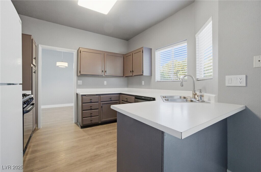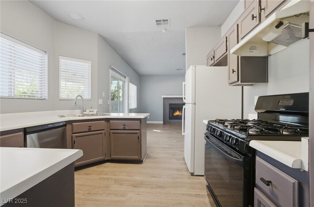 Welcome to this stunning 4-bedroom, 2.5 -bathroom home located in the vibrant city of Las Vegas, NV. This property boasts a large family room, complete with a cozy fireplace, perfect for entertaining or relaxing. The home features luxury vinyl plank flooring throughout, adding a touch of elegance and durability. The custom kitchen cabinets provide ample storage and a stylish touch to the heart of the home. The primary bedroom includes a spacious walk-in closet and an en-suite bathroom with a dual sink for added convenience. A separate laundry room with a washer and dryer included adds to the functionality of the home. Step outside to a covered patio overlooking a large, fully fenced backyard, offering a private outdoor space for enjoyment. The home also includes a 2-car garage with lots of storage shelves. This home is a perfect blend of comfort and modern living. **As an extra added perk, Trash, Sewer and Tenant Portal Fee are included in​​‌​​​​‌​​‌‌​‌‌​​​‌‌‌​​‌​‌​​​​​‌ rent!