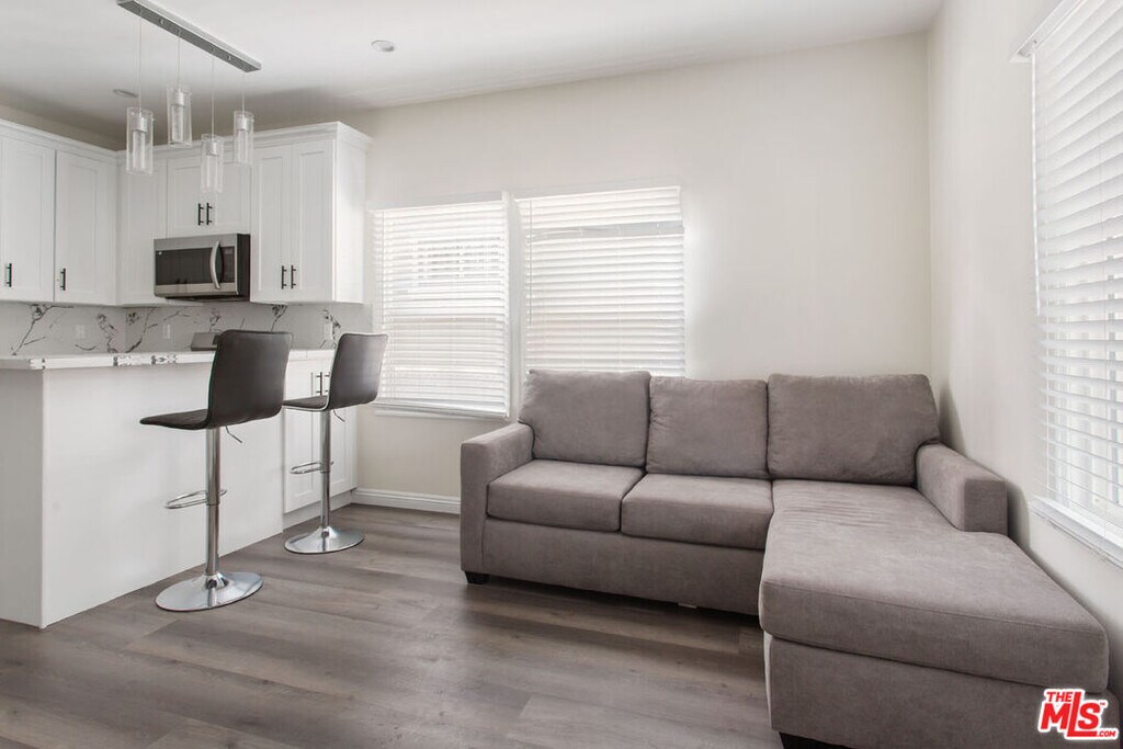 One of four units in a recently renovated 4 plex. Craftsman style exterior, with a modern interior. New engineered flooring, fully furnished apartment. One secured parking spot. Easy to view. Large oversized one bedroom and large bath. A must see. MLS# 25616937