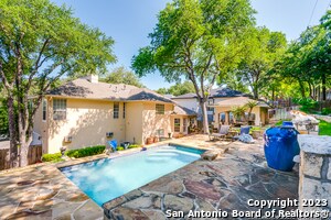 Experience refined North Central San Antonio living in this beautifully designed home in Churchill Estates featuring a unique split level floor plan, spacious rooms, and a generous garage. The backyard is a true retreat, perfect for both relaxing and entertaining, with a fully equipped outdoor kitchen, refreshing pool, and peaceful views from one of three inviting patios. Ideally located just minutes from 281 and 1604, approximately 12 minutes to the airport, 15 minutes to the medical center, and 20 minutes to downtown San Antonio.