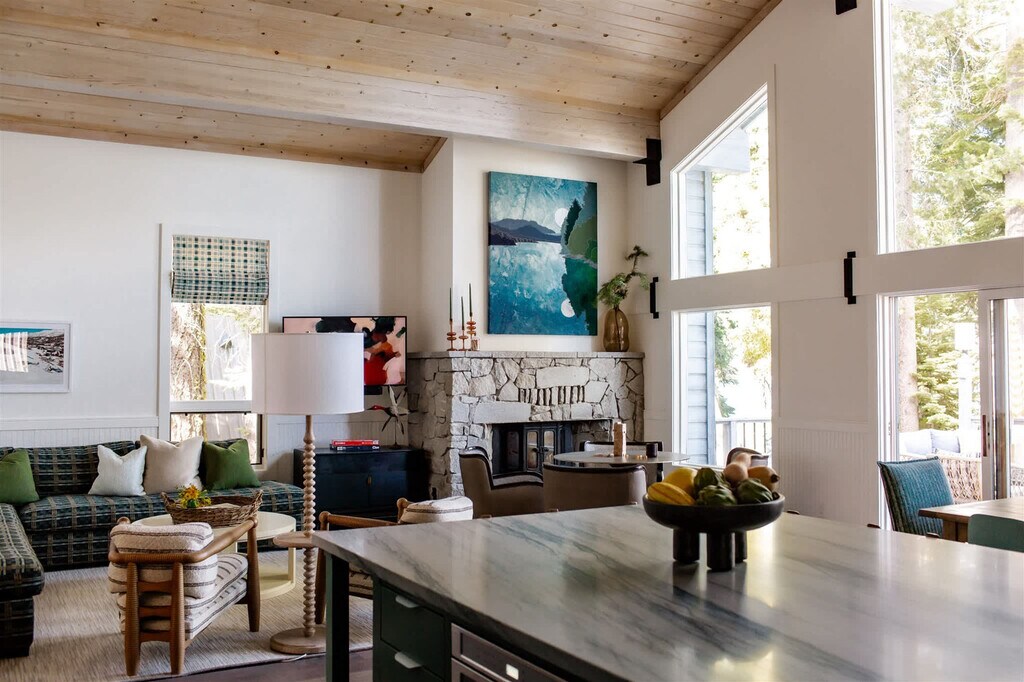 This 5-bedroom Donner lake house offers a perfect blend of comfort and luxury for an unforgettable vacation in Truckee, CA. With its spacious layout, this home comfortably accommodates up to 16 guests, making it ideal for larger families or groups. The property features expansive windows, a cozy indoor fireplace, and a seamless open floor concept connecting the kitchen, dining, and game room areas, ensuring you feel at home. Enjoy the convenience of a prime location with easy access to local attractions, shopping, and dining. Escape to your private Donner lakefront retreat, where you can enjoy year-round fun with a variety of amenities. The home boasts a fully stocked chef’s kitchen with high-end appliances, a large island with high seating, and a dining area. Relax in the living room with a 55" smart TV and ample seating, or head to the game room featuring arcade games, skee ball, and a home gym. The outdoor space includes a hot tub, built-in BBQ grill, and a gas fire pit, perfect for cozy evenings. Parking is available for up to 6 cars, with 2 spaces in the garage and 4 in the driveway. Street parking is also allowed. Boat rentals are available nearby, although the boat lift is not for guest use. Outdoor furniture and lake access, including kayaks, are offered seasonally. Located near Donner Memorial State Park, this home offers easy access to hiking trails, swimming, fishing, and picnicking. A short drive away, Sugar Bowl Resort provides world-class skiing and snowboarding in the winter and stunning hiking and mountain biking trails in the summer. Explore downtown Truckee with its historic buildings, unique shops, and dining options, or visit the KidZone Museum for family-friendly fun. Enjoy lakeside dining at The Pub at West End Beach or indulge in gourmet burgers at Burger Me! Check-in is at 4 pm and check-out is at 10 am. The minimum age for check-in is 21 years old. Outdoor dining chairs and cushions are stored away during the winter months and will not be available for guest use. Parties are strictly prohibited and grounds for termination of stay. There is a security camera located at the front door to monitor the cleaning team. Quiet hours are between 10:00 pm and 7:00 am. The home includes a dedicated workspace in Bedroom 2, equipped with a desk and chair, providing a comfortable environment for remote work.