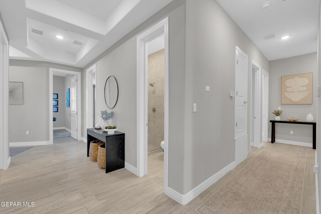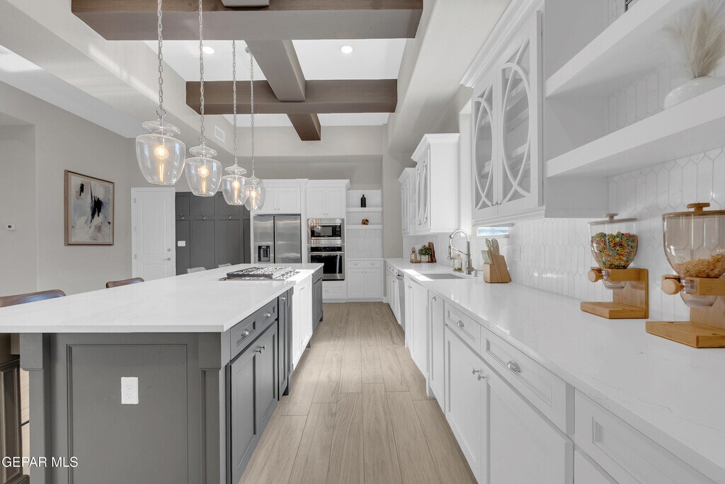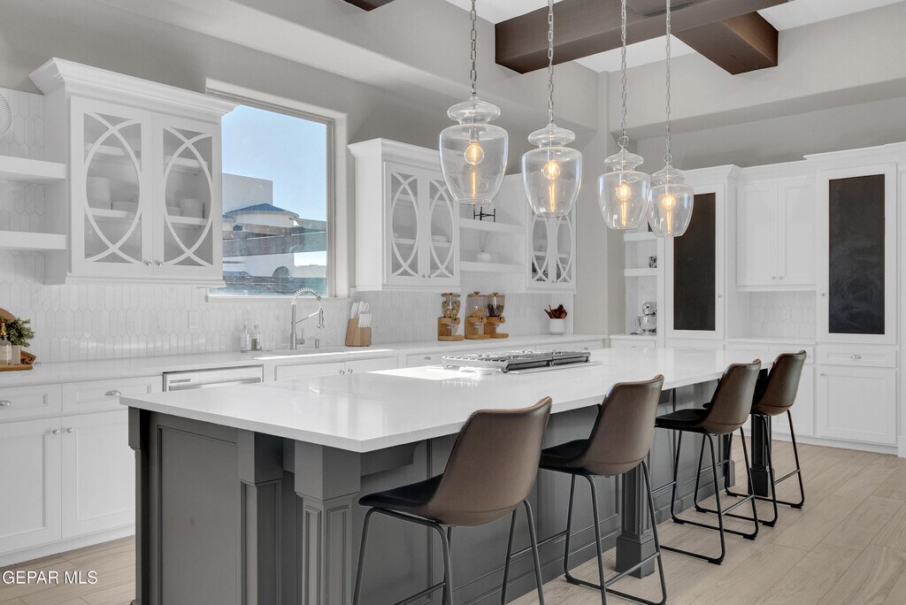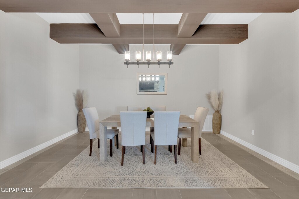 Discover this stunning and modern 5-bedroom home that beautifully blends style and functionality! As you enter,you're greeted by a spacious courtyard and an inviting foyer that set the tone for this remarkable residence. The open-concept design showcases soaring high ceilings,a generous living area adorned with elegant beam details and a cozy fireplace,seamlessly flowing into a sophisticated dining space that's perfect for entertaining. The chef's kitchen is a true masterpiece,featuring a long island,top-of-the-line stainless steel appliances,exquisite quartz countertops,and a breathtaking backsplash that adds a touch of luxury. The primary bedroom is a serene retreat,complete with an en-suite bathroom that boasts a lavish walk-in double-door shower,dual sinks,a separate soaking tub,and a spacious walk-in closet. Accommodating your family's needs,this home also offers four additional bedrooms and two beautifully appointed bathrooms,all nestled within over 3,000 square feet of ample living space. Natural light dances throughout the home,highlighting the elegant ceramic tile in the main areas and soft carpet in the bedrooms. Step outside to your backyard oasis,ideal for outdoor gatherings,featuring an extended covered patio,a charming pergola,and low-maintenance artificial turf. Conveniently located near top-rated schools,lush parks,shopping,and vibrant entertainment options,this home is just a short stroll from Pebble Hills High School. With Fort Bliss less than 30 minutes away,this is the perfect blend of comfort and accessibility. Don't miss your chance to make this dream home your own!