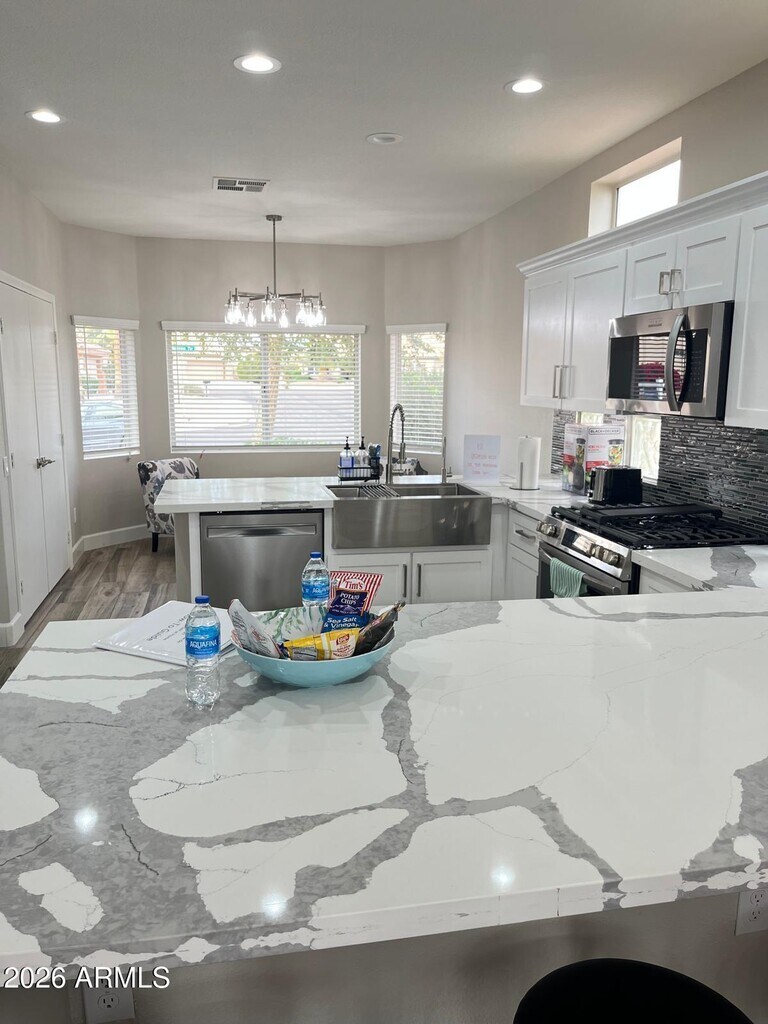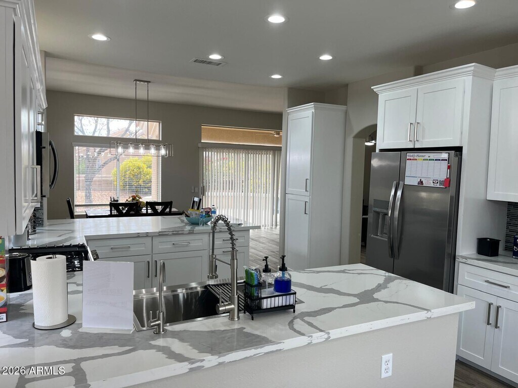Fully Furnished!!🏠 SENSATIONAL 5-STAR 'CHANDLER' MODEL - LUXURY LEASING REDEFINED! 🔑 Experience unparalleled,active adult luxury in this fully updated,move-in ready 'Chandler' model,now available for lease. This stunning residence has undergone a complete,meticulous top-to-bottom renovation,now boasting high-end finishes and a modern,cohesive design throughout. As you step inside,you are greeted by a spacious,light-filled living/dining room paired with a soaring ceiling and a sliding glass door that opens to the backyard. The entire interior shines with fresh neutral paint,brilliant new can lights,and elegant chandeliers,perfectly illuminating the gorgeous new wood-look tile flooring that flows seamlessly throughoutensuring a maintenance-free and contempo The heart of the home,the kitchen,is a true gourmet's dream and features an entirely new set of fixtures. It has been tastefully upgraded with new white shaker cabinetry (complete with crown molding),sleek quartz countertops,and new stainless steel appliances. Completing this impressive space are a convenient pantry,a peninsula with a breakfast bar,and a cozy nook bathed in natural light from a charming bay window. Adjacent to the main living area,a versatile den is the ideal spot for a home office,hobby studio,or library. Retreat to the spacious Primary Bedroom,which features its own sunny bay window and a generous walk-in closet with new built-in shelving. Both the Primary and Secondary bathrooms have been completely and luxuriously remodeled to spa-like perfection,featuring new walk-in shower enclosures,new vanities paired with stunning lighted mirrors and gorgeous vanity lights,and new comfort-height toilets. This rental property truly offers "NEW EVERYTHING" from the exterior paint to the internal fixturesproviding the ultimate fresh start. Enjoy the perfect Arizona lifestyle with a low-maintenance landscape and a private backyard complete with a covered patioideal for unwinding with your favorite beverage. As a resident of this premier community,you will benefit from resort-style amenities,including four recreation centers,multiple swimming pools,golf courses,fitness facilities,tennis and pickleball courts,hobby studios,and a vibrant variety of clubs and social activities. Why settle for less? Lease this virtually new home today in a highly sought-after,active adult community!