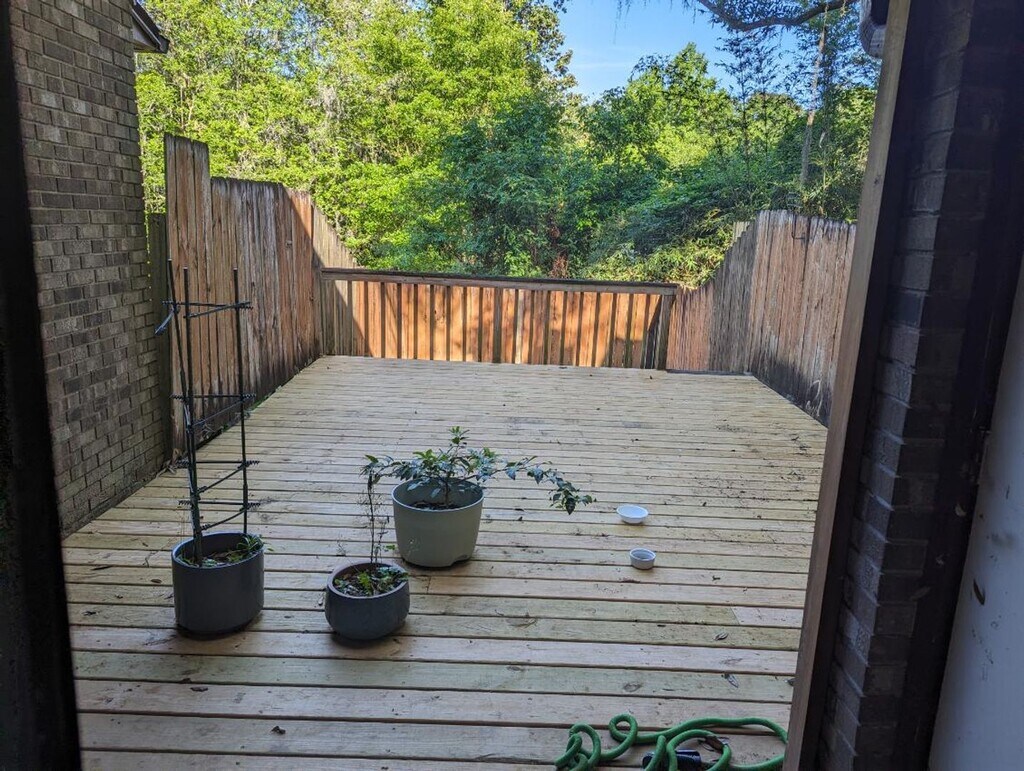 Repairs just completed and ready to move into. Conveniently located on small culdesac street. 2-story roomy townhome with over 1250 sq ft. Living area downstairs with convenient half bath. Two master bedroom suites each with private bath upstairs. All hard surface area flooring with new wood on stairs and upstairs. Private back yard and oversized deck and laundry room.