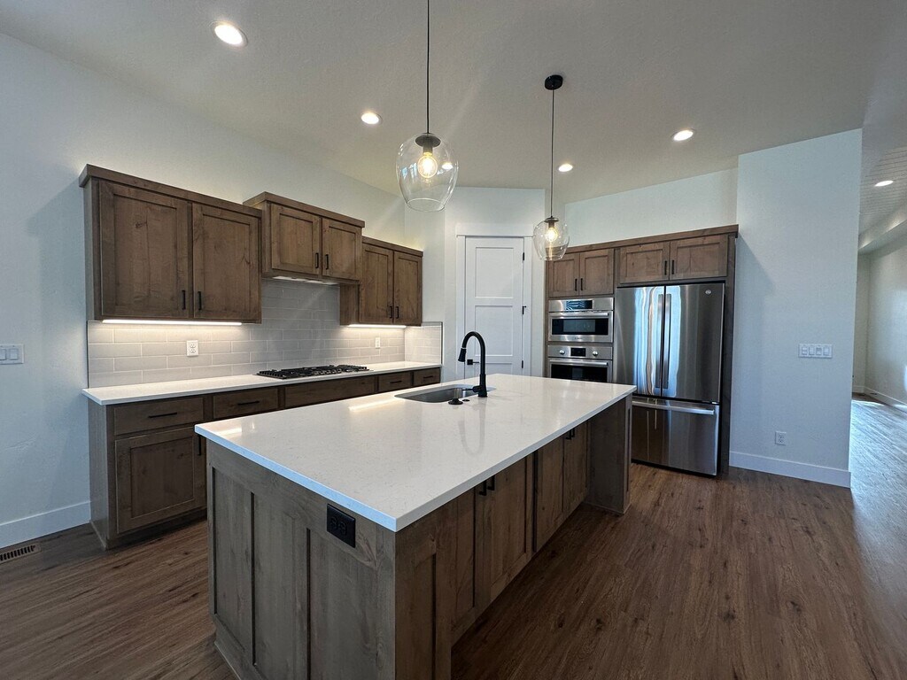 Beautiful 3bed, 2bath, 1,627sq.ft. home with many upgrades. Including 10' ceilings, custom cabinetry, wrapped windows and wood beams. Kitchen includes Bosch appliances and built-in microwave/oven combination. Check out this home in one of Kuna's newest communities (Cazador Sub). Includes community pool. Visit our website for additional details and applications. App fee: $40 Deposit is equal to one month's rent. NO PETS