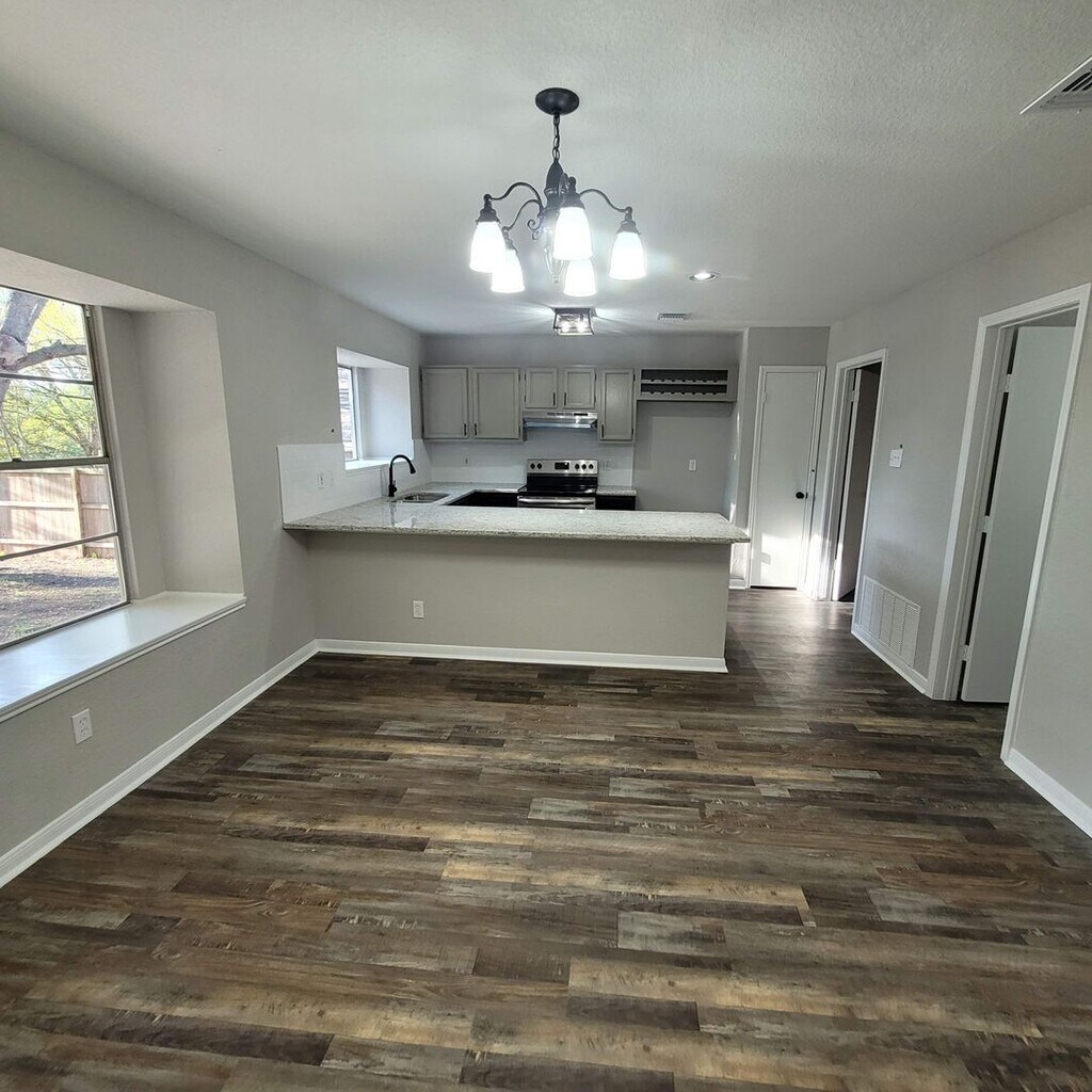 Clean and ready for move in. This home features an open floor plan that is filled with natural light. The large living room is perfect for entertaining guests or relaxing with family. The kitchen features a large breakfast bar, granite counter tops, and stainless steel appliances. The master suite is large, offers plenty of closet space, and has full bathroom. The backyard is huge, and features a large covered patio and plenty of mature trees.