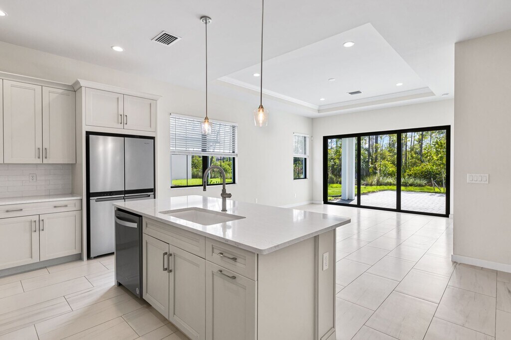 Enjoy the opportunity to live in a newer luxury home in the North Naples community of Abaco Pointe. This annual, unfurnished Baypointe model offers 3 bedrooms, 2 bathrooms, and a 2 car garage, along with a thoughtfully designed floor plan and builder upgrades throughout. From the moment you walk in, the home feels light, bright, and inviting, with soaring ceilings and carpet-free living featuring porcelain tile flooring throughout. The kitchen is exceptionally well designed with abundant storage and a large wet center island that serves as the heart of the home. The bedrooms are generously sized, and the primary suite offers a large walk-in closet, dual sinks, and a glass-enclosed shower. Outdoor living is just as appealing, with a covered lanai and extended pavers overlooking a tranquil preserve. Abaco Pointe offers residents access to a clubhouse, community pool, and fitness center, all in a highly desirable North Naples location. Conveniently situated just a short drive from shopping, dining, Founder’s Square, I-75, and Naples’ beautiful white sand beaches, this home offers a wonderful combination of comfort, style, and location. View the 3D tour here: *** Lawn maintenance, irrigation water, pest control, and trash removal are included in the rent. *** ** Pets allowed, with approval, and pet deposit. **
