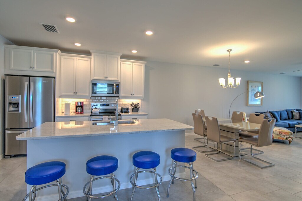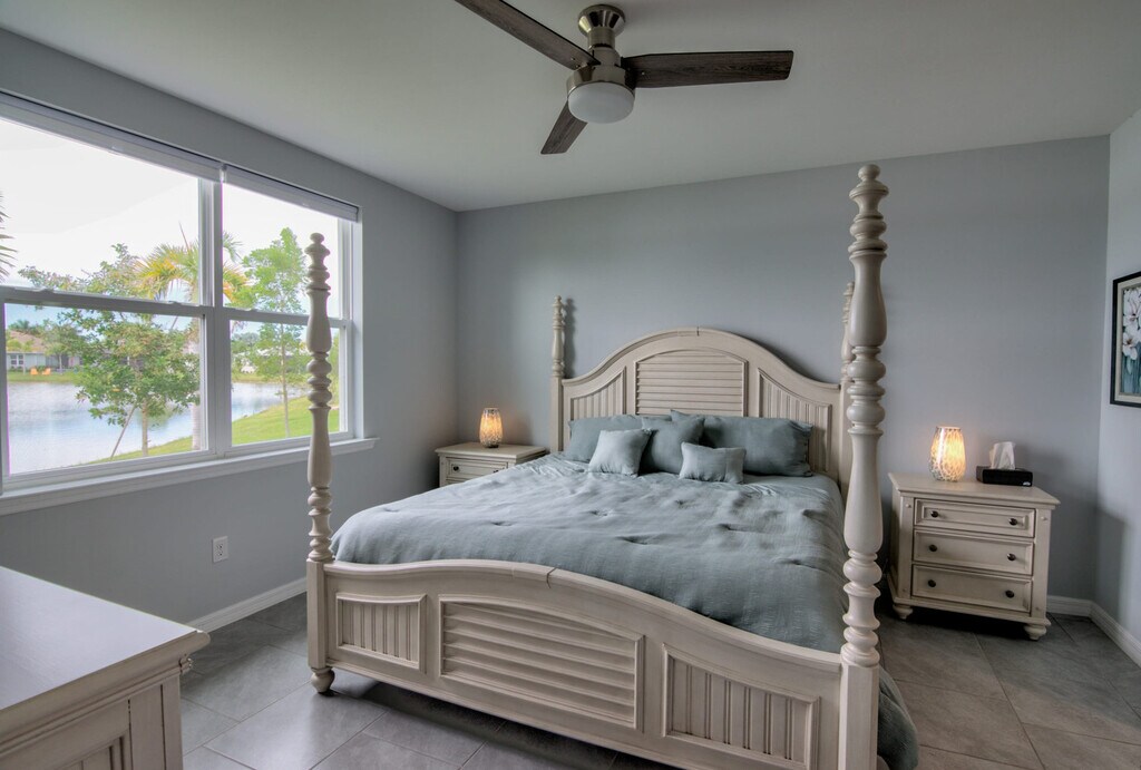 Feel at home in this well-appointed and newer 2-bedroom villa with a den, located in the Coral Harbor subdivision of Naples Reserve on a quiet, circular street. This villa also features a 2-car garage and a spectacular lake view. The villa features a kitchen, dining area, and family room. The main bedroom suite includes a 4-poster king-size bed and an en suite bathroom with granite counters, dual sinks, and a glass-enclosed shower. The second bedroom is set-up with 2 twin beds. The second full-sized bathroom has granite counters and a tub and shower combo. The spacious laundry room has a newer washer and dryer. Guests can use the electric grill located in the garage. The screened and covered lanai, accessed from the family room, features an outdoor loveseat, 2 outdoor armchairs and footrests, and an outdoor table. Dogs are welcome with a fee. Only 1 non-shedding, 30 pounds or less hypoallergenic dog is permitted. Naples Reserve is a master-planned community centrally located in east Naples, Florida, right off of US-41, and is a quick ride to downtown Naples, the Naples Pier, and beaches. The community offers amenities such as kayaking, bocce, tennis, swimming in the resort-style pool, relaxing in the hot tub, playing tennis and pickleball, and relaxing by the sandy beach that is lakeside while enjoying a cold drink under a chickee hut. Additional amenities include bocce courts, a beach volleyball court, and a well-appointed gym/exercise room. This property is about a 50-minute drive to the Fort Myers Int'l Airport. Quiet hours are between 10:00 PM and 8:00 AM. Furnishings should not be rearranged. Any damage or malfunction should be reported to the host right away so that the damaged item can be repaired or replaced. Access to the property cannot be given until HOA approval is received prior to move-in along with the second payment, no exceptions. Please allow 30 days for processing. Includes a den that functions as an office with a desk and desk chair along with a pull-out sofa. Registration Number: Florida state permit number: #DWE2102775 [SI]