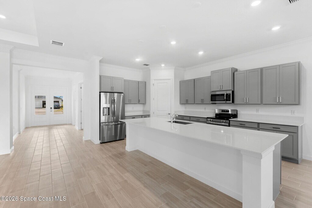 Step into this brand-new,never-lived-in lakefront home offering 3 bedrooms,3 baths,and a spacious 3-car garage across 2,470 sq ft. A stunning double front door welcomes you into a large foyer with soaring ceilings,crown molding,and a bright open floor plan. The designer kitchen features quartz countertops,a massive island,and modern finishes,flowing seamlessly into the living space and out to glass sliders overlooking the lakefront lanai. Beautiful wood-plank tile runs throughout--no carpet anywhere. The split floor plan offers privacy,including a luxurious primary suite with his-and-her walk-in closets,plus a private en-suite for guests. Enjoy resort-style amenities with a clubhouse full of activities,pool,gym,pickleball courts,scenic walking trails and much more. Everyday feels like a vacation! MLS # 1071147