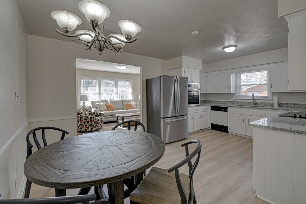 1465 Brookwood is a 4 BR, 2 Bth ranch style brick roomy ranch style home, fully furnished with 1559 sq ft. A large unfinished basement is painted white with a bonus room and a convenient laundry area. The detached covered carport is a bonus for additional parking or general backyard lounge space. A further covered attached carport provides additional parking while walking into a covered back porch. All four bedrooms have designer-inspired Queen-sized Beds and a Nightstand, Dresser, and Desk, setting the stage for you to bring your style. The home has no carpet; new LVP flooring and paint have been updated in 2024. The large kitchen has ample cabinets, granite counters, stainless appliances, and an eat-in kitchen. The open floorplan refers to the main living space, offering a sofa, roomy club chairs, TV cabinet, and additional furniture. This property is conveniently located within walking distance of Wake Forest University and University Pkwy, which leads to downtown Winston-Salem. The house includes a washer/Dryer, all appliances, and one 55-inch TV in the living area. Small appliances, such as a coffee maker, are not included. This home is ideal for students, graduate students, athletes, faculty, or families looking to lease a property or bedroom close to campus for WFU games, events, and visits. This property is conveniently located within walking distance of Wake Forest University and University Pkwy, which leads to downtown Winston-Salem. There are numerous excellent leasing options available in this prime location near WFU!! By the bedroom will be 975.00 per tenant per month. The full house lease will be 3800.00