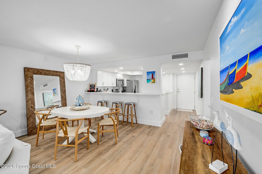 Welcome Home to Atlantic Ocean Views throughout at Eastwind Condos. This newly renovated and barely lived in 2nd floor END Unit Condo is a Rare Opportunity to rent 6.5 months to 12 months in the heart of SOUTH SATELLITE BEACH. Oversized 1 CAR GARAGE and Separate storage area is also INCLUDED!! High end Pottery Barn furnishings Including King size bed in Primary Suite and Queen Bed in Guest Suite make for the most comfortable stay. Your Most Comfortable Oceanfront Balcony Furniture awaits your enjoyment of Daily SUNRISES. If you prefer to Nature watch from Inside,that is also possible because Moonrises,Sunrises,Nature Watching,Rocket launches ALL can be enjoyed from your living room as well. Satellite Beach offers some of the Best Surfing ! Also offers Right Whale sightings,dolphins,and more. WINTER season not open unless yearly rental. Complex Includes garbage drop And Elevator BUT Your new home is located on the 2nd floor near Steps. Welcome Home to #206 Eastwind MLS # 1070288