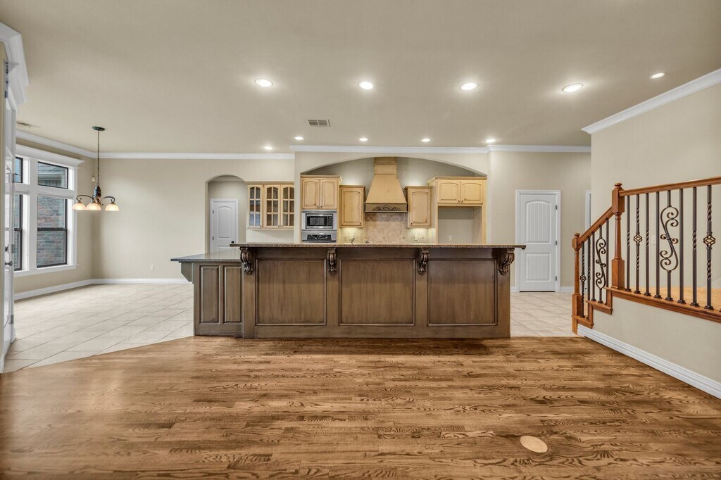 Executive home on double lot in beautiful Enclave at Harvard Ponds. 3 beds, Office, and 2.5 baths downstairs. 1 bed, 1 bath, 2nd family room, and family theater room upstairs. Enjoy the pickleball/tennis and basketball court in the scenic backyard. Basic lawncare provided at no cost to Tenant. 3 car garage has a large above ground storm shelter inside. Plenty of storage throughout. Easy distance to Bixby West Elementary with no driving required. $20 Latchel Service Fee plus Renters Insurance is required of tenants. Pets are okay with restrictions and owner approval with extra rents. Contact Brian Scarbrough at with questions.