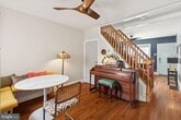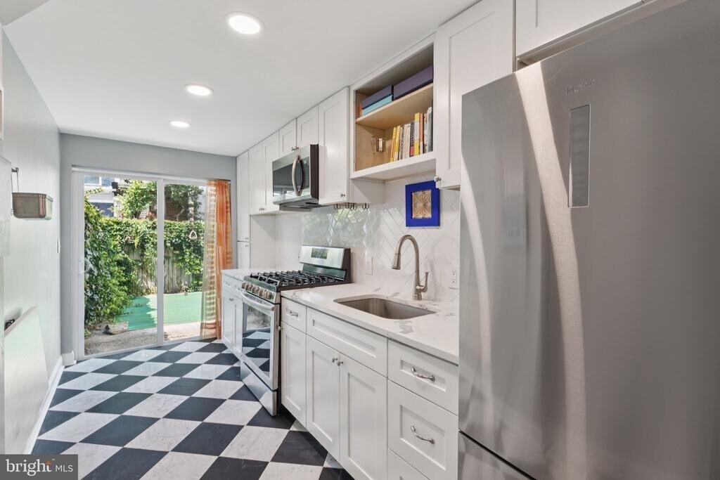 This bright and welcoming home offers a blend of older charm and modern updates. The living room is filled with natural light from oversized windows and features hardwood floors that extend into the dining room and upstairs. Just beyond the living room, the spacious dining room provides plenty of room for entertaining and flows easily into the kitchen. The kitchen stands out with quartz countertops, marble slate flooring, and stainless steel appliances. Ample cabinetry provides generous storage, while a swing-up wooden countertop adds extra versatility. From here, step outside to the private patio—perfect for grilling, outdoor dining, or simply relaxing. Upstairs, two well-sized bedrooms offer comfortable retreats. There is a full bathroom with a tub-shower combo and plenty of space for all of your essentials. The unfinished basement expands your options with laundry and abundant storage space. Ideally situated in a walkable location near the restaurants and shops along Frankford Avenue like Kalaya and Suraya, as well as fan favorites like Loco Pez, this is also very close to greenery for dogs and kids alike. This home also offers easy access to public transportation and the expressway.