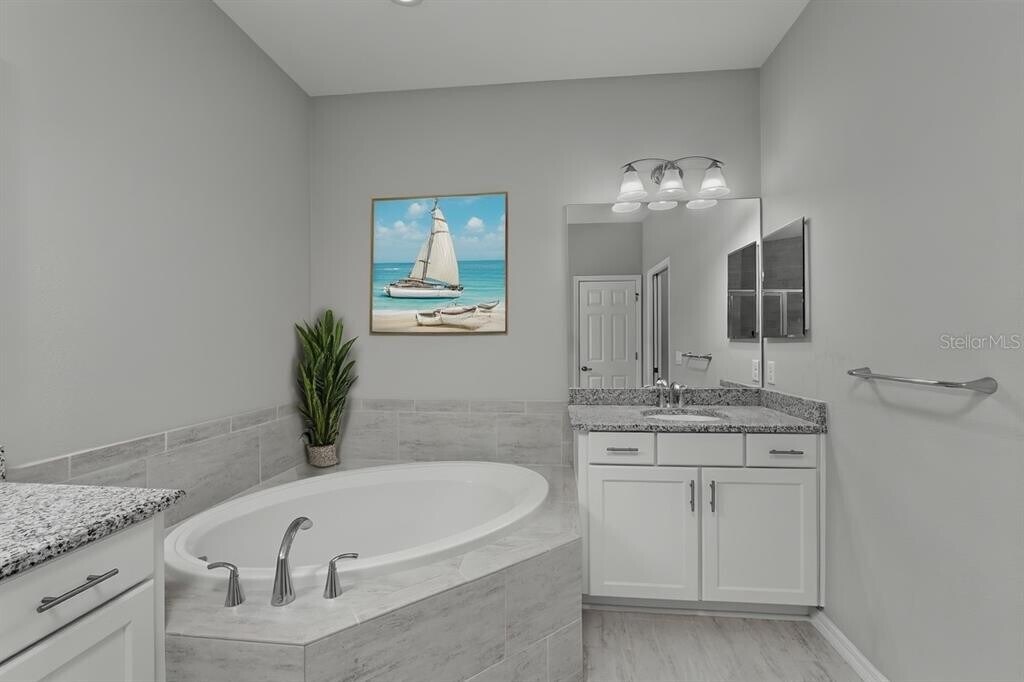 One or more photo(s) has been virtually staged. NOW AVAILABLE FOR RENT – ANNUAL LEASE ONLY,NO SHORT-TERM LEASING – Experience exceptional Dunedin living in this sought-after 3-bedroom,2-bath villa within the "Villas at San Christopher" enclave. Built in 2019,this community features just 12 villas nestled on a private,cul-de-sac street. This home boasts a modern open floor plan with high ceilings,hurricane-proof windows and doors,and a spacious 2-car garage. The kitchen shines with pristine white cabinets featuring soft-close technology,a gas range,stainless steel appliances,and elegant quartz countertops. Enjoy ample space for entertaining in the expansive living room and dining area. Step out to the large,screened lanai for relaxed evenings. The serene master suite is bathed in natural light and includes dual walk-in closets. The master bath features a soaking tub,beautifully tiled shower,and dual vanities topped with granite. The second bedroom is well-sized with ample storage,while the third bedroom offers versatile use as a home office,guest room,or sitting area. A functional laundry room with shelving and a utility sink adds convenience. Stylish plantation shutters and wood plank ceramic tile throughout the main living areas complement the plush carpeting in the bedrooms. The HOA meticulously maintains landscaping and pest control for a worry-free lifestyle. Dunedin's vibrant downtown,with its array of shops,eateries,and festivals,is just minutes away,as are the pristine beaches of Caladesi Island State Park and Honeymoon Island. RENTAL TERMS: First month's rent,last month's rent,and security deposit required to move in. Credit check required at $50 per person and background check by HOA ($75). No cats allowed. Schedule your showing today! MLS# TB8457918