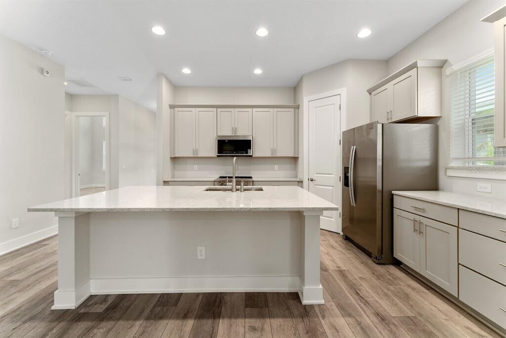 Beautifully Maintained 3/2.5 Bath Home with Bonus Room and 2-Car Garage in Laureate Park of Lake Nona Don’t Miss This Beautifully Maintained Home in Laureate Park,Lake Nona! Built in 2020,this immaculate 3-bedroom,2.5-bath single-story home offers just under 2,100 sq. ft. of stylish living space in the highly desirable Laureate Park community. Step inside to find vaulted ceilings,wood-grain luxury vinyl flooring (with plush carpet in the bedrooms),and modern neutral paint throughout. At the front of the home,a bonus room serves perfectly as a home office,study,or guest room. The open-concept kitchen boasts quartz countertops,stainless steel appliances,a large center island with sink and breakfast bar,and ample counter and cabinet space—ideal for any home chef. The spacious family room,open to the kitchen,includes a convenient half bath and French doors leading to a covered back patio,perfect for entertaining. The primary suite,located at the rear of the home,features a tray ceiling,a large walk-in closet,and a luxurious en-suite bath with dual vanities and a large shower. Two additional bedrooms share a hall bath. A detached 2-car garage sits at the back of the property,and the home includes a covered patio for outdoor enjoyment. Community & Location Highlights Residents of Laureate Park enjoy exceptional amenities,including: • A recreational center with community pool and aquatic center • A fitness center,community park,walking trails • Tennis and pickle ball courts • Playgrounds for all ages This home is just minutes from Lake Nona Medical City,Boxi Park,Nemours Children’s Hospital,VA Hospital,the USTA National Campus,local shopping and dining,and offers quick access to Orlando International Airport (OIA),417 Greenway,and 528 Beachline (easy trip to Cocoa Beach!). Zoned for A+ schools. Rental Details • High-speed internet (provided by the HOA) included in rent. • Lawn treatments included; tenant responsible for mowing,edging,and maintaining flower beds/shrubs. • Proof of renters insurance is required. • Note: There is a separately rented studio apartment above the garage with its own 1-car garage space (not included with this rental). The Laureate Park HOA requires a separate renter application and $200 approval fee (paid by renter after Fusilier Management Group approval). MLS# O6347851