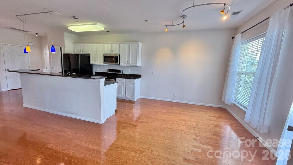 3 bed room 2 full bath on 4th floor,end unit in gated community behind Ballantyne Village. open floor plan with gleaming hardwood floors,living area with electric fireplace leads to nice private balcony over looking nice pond with water fountain. Split floor plan offers privacy for primary Bed room. Large Open kitchen with lots of cabinets and counter tops. . Gated community features,and elevator. Walking distance to many shops and restaurants. Easy access to 485. MLS ID CAR4344428