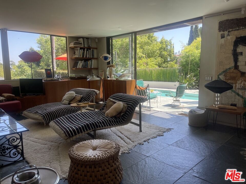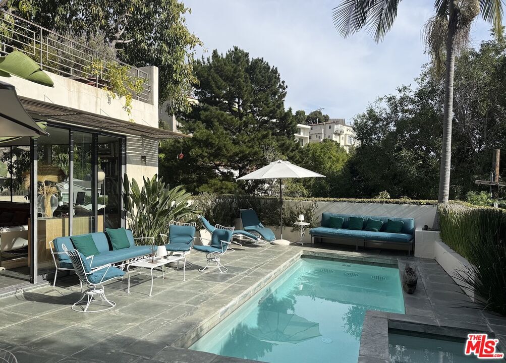 Available only furnished and only until 8/31/26. Prime location above legendary Sunset Strip. Beautifully and stylishly renovated Home, designed for entertaining and for enjoying luxurious leisure time. Gourmet Xtra Lrge Kitchen w/ Viking appliance overlooking lush vibrant gorgeous Garden with sparkling Pool/Spa. Bright huge Master suite upstairs with Den/Office and an oversized wood deck. Voluminous Living Room flooded with natural light opens w/ sliding doors to the garden and the pool. A must see for the most discriminating Tenants. Rent excludes : heat for pool, gas, water and electricity. Rent includes : high speed internet, ADT security alarm system, sling TV, Pool man, Gardener and once every other week a maid service. Landlord keeps the 4th bedroom as a personal storage unless additional rent amount is negotiated up. 2 car Driveway outside parking spots. MLS# 26651185