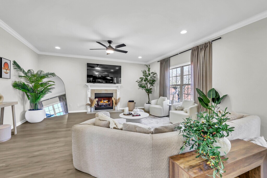 ***NO HOA*** This stunning open-concept home in the highly desirable Fields of Northmeade subdivision offers soaring ceilings and elegant arched walkways that create a bright, spacious feel throughout. The inviting living area features a cozy fireplace, perfect for relaxing evenings at home. Enjoy outdoor living on the covered deck with an adjoining grilling patio—ideal for entertaining family and friends. A versatile bonus room has been converted into a 4th bedroom, providing flexible space to fit your needs. The primary suite is a true retreat with double vanities, a luxurious soaking tub, and a separate shower with a built-in bench. Conveniently located near Fort Campbell, shopping, dining, and I-24, this home perfectly blends comfort, style, and functionality.