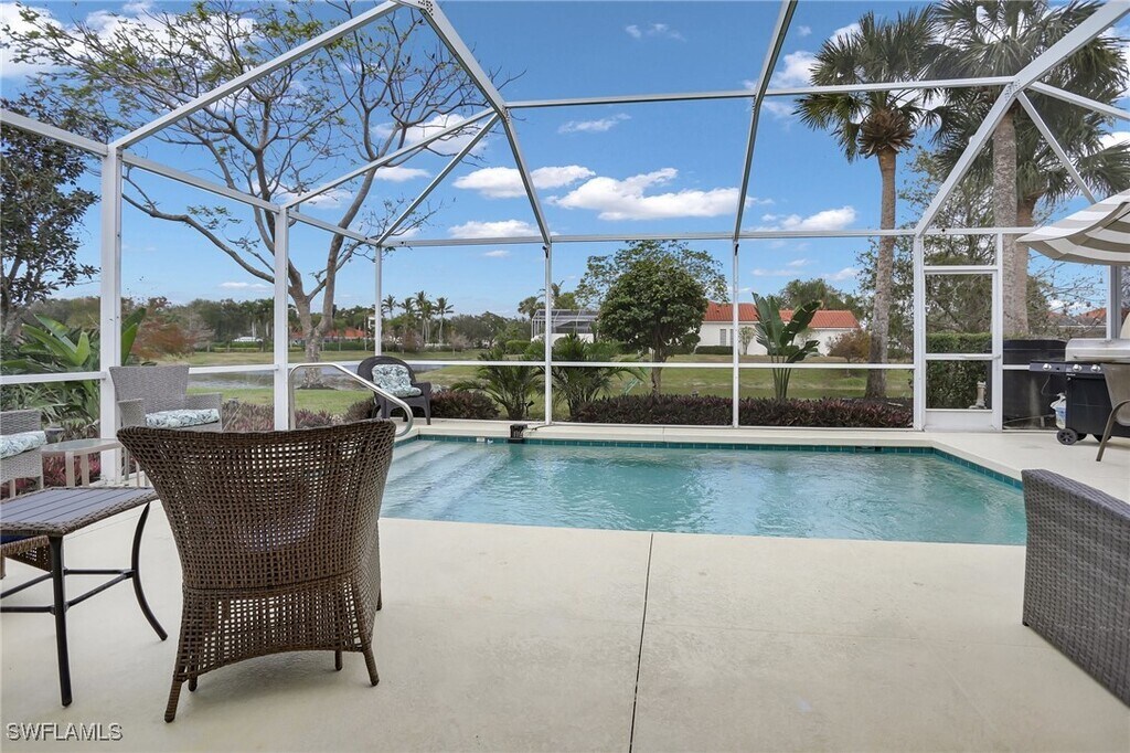 Spectacular Capri Villa with POOL at San Remo. Welcome to this 2 bedroom,2 bath attached villa offering a seamless blend of comfort and relaxation. The heated pool beckons you to take a refreshing dip or simply lounge on the private lanai,soaking in the beauty of your surroundings. The Florida room provides the perfect spot for al fresco dining or sipping your morning coffee as you watch the wildlife on the water. Just 15 minutes from the renowned Barefoot Beach,you have easy access to pristine sands and sparkling waters,making every day a potential beach day. Embrace the laid-back Florida lifestyle and immerse yourself in the beauty of the Gulf Coast,all while enjoying the comforts of your own private oasis.