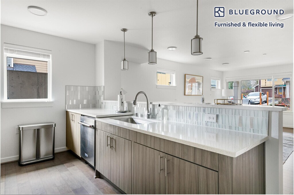 Feel at home wherever you choose to live with Blueground. You’ll love this sophisticated Crossroads furnished three bedroom townhouse with its modern decor, fully equipped kitchen, and cheery living room. Ideally located, you’re close to all the best that Bellevue has to offer! (ID #SEA703) The advertised rate of $3,590/month is the lowest available price, based on a 12 month(s) stay with a move-in date of April 1, 2026. Rates vary depending on the duration of stay, season, and other parameters. For exact pricing and additional pricing components, please visit our website and enter your desired move-in and move-out dates. The rate is applicable when billed upfront; it can be higher if billed in multiple payments. Brokers are welcome to reach out. Were you looking for an unfurnished lease? Try Blueground instead and upgrade from unfurnished to furnished living: - Furnished at rates comparable to unfurnished - No setup or furniture costs - save thousands - Move-in ready - save time, just bring your suitcase Designed with you in mind As with any Blueground townhouse, you’ll find a thoughtfully designed space complete with beautiful furniture and a fully equipped kitchen in this three bedroom property. And, thanks to our superior quality mattresses, luxury linens, and towels, you can relax knowing you’ll always feel comfortably at home. When you’re ready for some fun, you can take in the Bellevue vibes or bring the entertainment to you with the premium wireless speaker or smart TV. This townhouse also offers in-townhouse laundry. Sleeping arrangements Queen Bed, 63in/160cm Queen Bed, 63in/160cm Queen Bed, 63in/160cm Amenities Building amenities unique to this three bedroom townhouse include an on-site: - Dryer - Washing machine - Parking - Pets allowed Arrival and ongoing support The entire townhouse is yours to enjoy! Throughout your stay, you’ll have access to our Client Experience team through the Blueground App. You can schedule additional cleanings, submit maintenance requests, and view our neighborhood recommendations with just a few taps. We’ll share all details upon confirmation of your stay. Other things to note Building amenities may have an extra cost. This Blueground townhouse has flexible lease options, allowing you to book it for one month, a year, or more. Pets are welcome, though weight limits and breed restrictions apply and may incur fees. Parking is offered based on availability and is subject to a fee. Please keep in mind that this is a walk up building. We take great pride in ensuring every photo displayed is shot in our own units with our actual furnishings. That said, we regularly refresh our decor and furniture arrangement, which may differ from what’s pictured. Also note - This apartment is accessible for people with physical disabilities [SI]