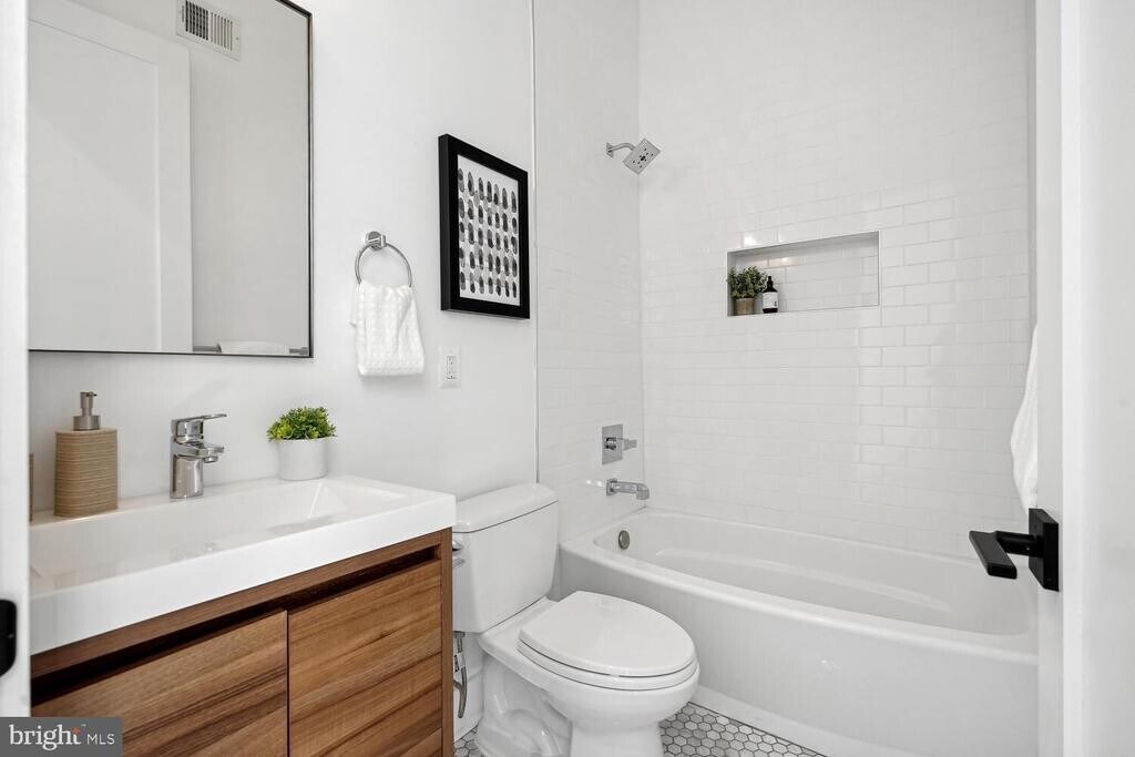Welcome to 1468 Newton St NW, Unit 2 is a stunning residence in the heart of Washington, DC, offering the perfect blend of modern amenities and urban convenience. This versatile property, suitable as a condo, townhouse, or multi-family home, spans 1,307 square feet and features two spacious bedrooms and two and a half luxurious bathrooms. Step inside to discover a beautifully designed interior with a harmonious mix of ceramic and hardwood floors that flow seamlessly throughout the home. The open kitchen is a chef's delight, equipped with Energy Star appliances, including a refrigerator, stove, and dishwasher. Enjoy meal preparation on premium counters, and take advantage of the breakfast bar and eat-in kitchen for casual dining. The windowed kitchen design allows natural light to flood the space, enhancing its inviting atmosphere. The bathrooms are elegantly appointed with granite finishes, featuring a primary ensuite with separate vanities for added convenience. Outdoor living is elevated with a private roof deck perfect for relaxation and entertaining, as well as a beautiful deck off of the living room. Comfort is ensured year-round with central air conditioning and heating, as well as cost effective with Solar Panels fueling the utilities! Experience the vibrant lifestyle of Washington, DC, in this exquisite property that offers both comfort and style. Don't miss the opportunity to make this exceptional residence your new home.