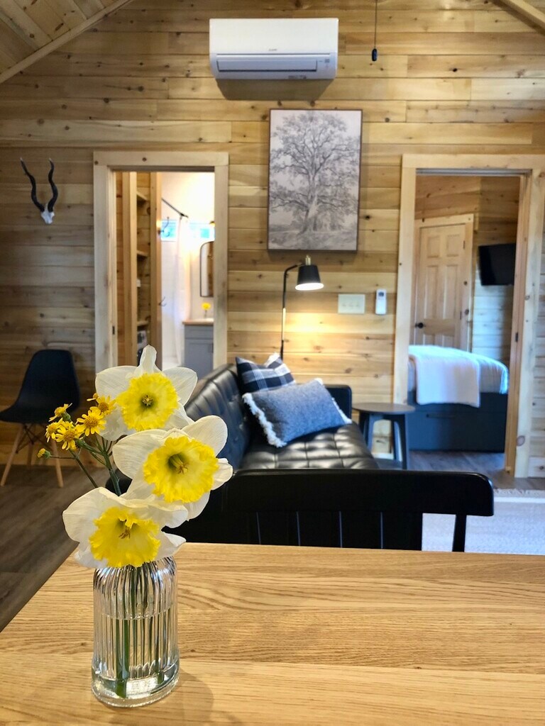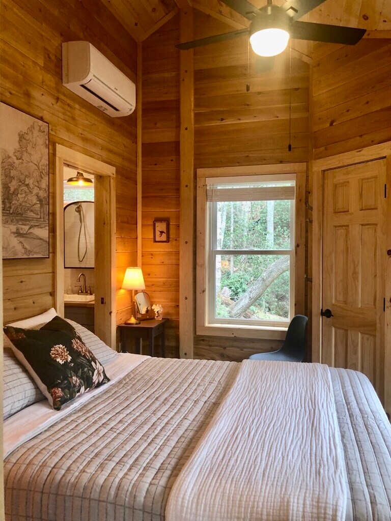 Newly built in 2024, fully furnished 1 bed and 1 bath real cedar log cabin with stunning mountain views, a large treehouse-style deck, washer and dryer, fast internet, and a full kitchen. Optional additional flat rate of $325 per month extra for all utilities, including electric, A/C, heat, propane, water, internet, phone, cable, weekly garbage collection, HOA/resident road fee, and renters insurance, making the total $1700. Move in ready with optional linens and kitchenware so you can just bring groceries and clothes- as the cabin is fully furnished, we cannot accommodate additional furniture or storage. A 4WD or AWD vehicle is required for the mountain road. It feels like a remote adventure yet is still convenient to town and the AVL airport, about 25 minutes away. Adjoining Sprout Mountain and nearby other local developments. Past tenants have leased while building nearby, and it is possible to hike from the cabin. Flexible lease terms are available, with stays as short as 3 weeks. Online Google Forms pre-application is required before scheduling a showing. Please message for details. Requirements include AWD or 4WD vehicle, renters insurance, income of three times the rent, and a credit and background check. No cats. No drive bys without an appointment. Licensed brokers/agents: Bring us your tenants! 5% commission on total lease term. Terms apply.