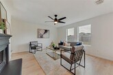 Stunning renovated home in a charming community mins from the lake, walking trails, & shops, perfect for a growing family. This spacious 4 BR 2.5 bath home with multiple living areas down stairs and upstairs features all new flooring thoughout. The kitchen has been updated with new quartz countertops, new stove and microwave. Perfect for entertaining family and friends. The master suite is tucked away on. the 1st floor, allowing for privacy with the remaining BR upstairs. The primary BR and bath gives a spa like oasis featuring a garden tub, a separate custom showing, and duel vanity. The powder room is also on the main floor , featuring a custom tile flooring, vanity and fixtures that will leave your guest with envy.Upstairs features a huge living area with so much potential. Perfect for a game area, office , living , etc. All the bedrooms are extremely spacious and have walk in closets.
