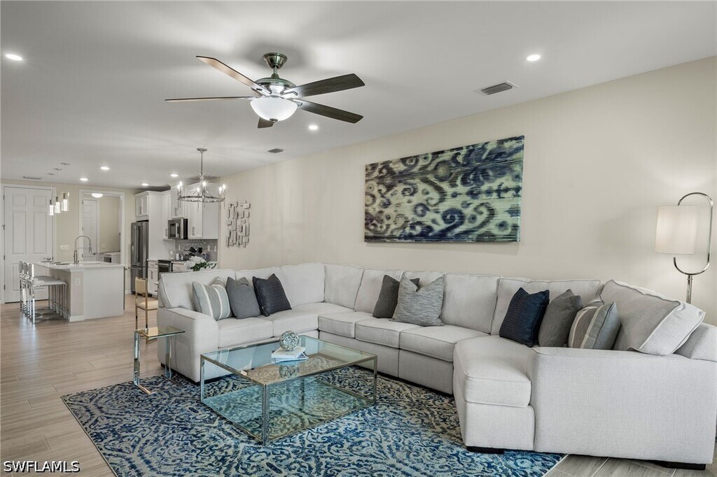 Annual Tenancy – This stunning villa features 2 bedrooms plus a den,2 bathrooms,and breathtaking lake views with desirable western exposure. Offered "Turnkey" for your convenience,this home accents modern furnishings and tasteful decor,allowing you to move in and start enjoying right away! Inside,you'll find upgraded porcelain tile flooring throughout the home (NO CARPET),adding a touch of elegance and ease of maintenance. The kitchen includes quartz countertops and eat-in breakfast bar,upgraded pendant lighting,stainless steel Frigidaire appliances and a full-sized pantry for dry goods. Upgraded impact windows and doors provide extra peace of mind and security. This villa feels spacious and functional,thanks to its well-thought-out design. The living room includes an 80' TV with sound system perfect for movie nights! Master bedroom offers a king bed with 70" TV,his/hers closets and walk-in shower. The screened-in lanai allows you to enjoy grilling on the BBQ while taking in serene lake views. Located in the popular community of Naples Reserve,with amenities for all ages,you'll have access to a large clubhouse on the lake,a NEW tiki bar/restaurant,a man-made beach with volleyball,a resort-sized pool/lap pool,a fitness center,pickleball courts,tennis courts,a basketball court,a children's play park,walking and biking trails with exercise stations throughout the loop,and a variety of scheduled events. There's always something exciting happening in this dynamic community. This villa offers not just a home,but a lifestyle that caters to all ages and interests. Don't miss the opportunity to lease this exceptional property! Located just minutes to grocery stores,shopping plazas,restaurants and just 15 minutes to Marco Island,25 minutes to downtown Naples 5th Ave/beaches and 15 minutes to I-75.