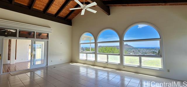 Beautiful large 3 br 3 bath with panoramic Diamond Head view. Over 2,400 SF interior with vaulted ceilings in the living room and 10 feet ceilings in the bedrooms, baths and kitchen area. Luxurious ceramic tile through out the home. Must see to appreciate located in convenient lower St. Louis Heights. Call Jerald Nakasone (R) for private viewing of the property. Appointment only. No pets, no smoking on the property. Interested parties are to provide valid Pic ID, HDL preferred, most 2 recent pay statements and/or most current financial statements together with completed application form and $40 application fee. The application fee can be waived if applicant can provide a credit report from a reputable credit reporting company ie...Experian, Equifax, Trans National and/or Credit
