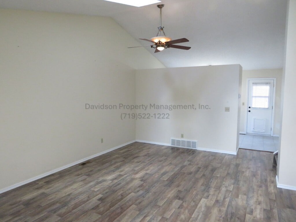 Welcome to this charming 3 bedroom tri-level home conveniently located near Fort Carson, offering comfort, space, and functionality. As you step inside, you are welcomed by a bright and spacious living room featuring vaulted ceilings and skylights that fill the space with natural light. The living room flows seamlessly into the kitchen and eat-in dining area, creating an open and inviting layout perfect for everyday living. Upstairs, you will find all three generously sized bedrooms, including the relaxing primary suite. The primary bedroom offers a large walk-in closet and a private en suite bathroom, providing a peaceful retreat. A full hall bathroom and a conveniently located laundry room complete the upper level, adding ease and practicality to daily routines. Heading down from the main level, you will discover an expansive family room centered around a cozy wood-burning fireplace, perfect for relaxing on chilly winter evenings. A convenient half bathroom is also located on this level. Step outside from either the eat-in area or the family room to enjoy the fully fenced backyard, featuring a well sized deck ideal for grilling, entertaining, or simply enjoying the outdoors. The yard offers plenty of room for play or relaxation. The home also includes a 2 car garage and a storage shed in the backyard, providing ample space for storage and convenience. This lovely 3 bedroom 2.5 bathroom home combines comfort, functionality, and a great location, and is ready to be called your home. All Davidson Property Management, Inc. residents are enrolled in the Resident Benefits Package (RBP) for $45.95/month which includes liability insurance, credit building to help boost the resident's credit score with timely rent payments, up to $1M Identity Theft Protection, HVAC air filter delivery (for applicable properties), move-in concierge service making utility connection and home service setup a breeze during your move-in, our best in-class resident rewards program, and much more! More details upon application. Approximate Measurements: Living Room-M: 14x18 Dining Room-M: 12x15 Kitchen-M:12x15 Family room-L: 14x17 Master-U: 12x15 B2-U: 9x10 B3-U: 9x10 Cross Streets- S. Academy Blvd & S. Nevada Ave A/C- No W/D- Full size hookups- Units not included Dw, Ds, R, R/O, MO *Special requirements: No Pets Allowed As per House Bill 23-1099 1. The Prospective tenant has the right to provide to the landlord a portable tenant screening report, as defined in section 38-12-902 (2.5), Colorado revised statutes; and 2. If the prospective tenant provides the Landlord with a portable tenant screening report, the landlord is prohibited from: charging the prospective tenant a rental application fee; or charging the prospective tenant a fee for the landlord to access or use the portable tenant screening report. None